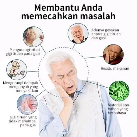 Ā·Kemasan: Kemasan berisi 40 gram lem krim perekat. Mudah digunakan untuk menempelkan gigi palsu.