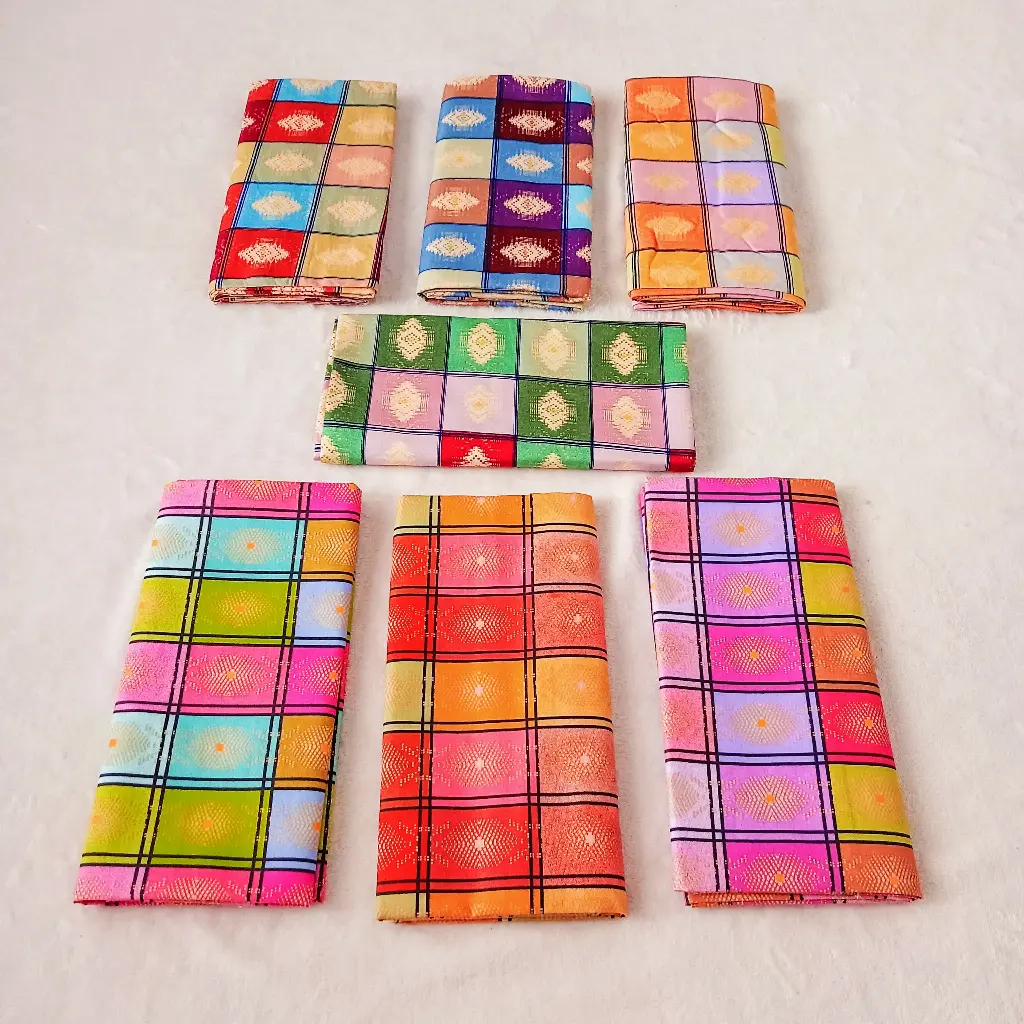 SARUNG SONGKET THAILAND DIBUAT MENGGUNAKAN ALA PRINTING MESIN, YAITU KOMBINASI DARI TINTA EMAS DAN TINTA WARNA SEHINGGA MENGHASILKAN SARUNG YANG CANTIK.