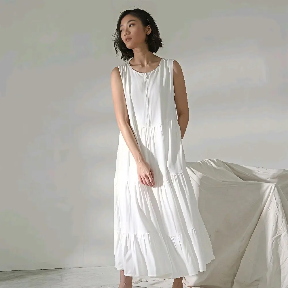 ·Baju wanita maxi putih tanpa lengan, desain elegan dan nyaman. Cocok untuk penggunaan sehari-hari. 🌟