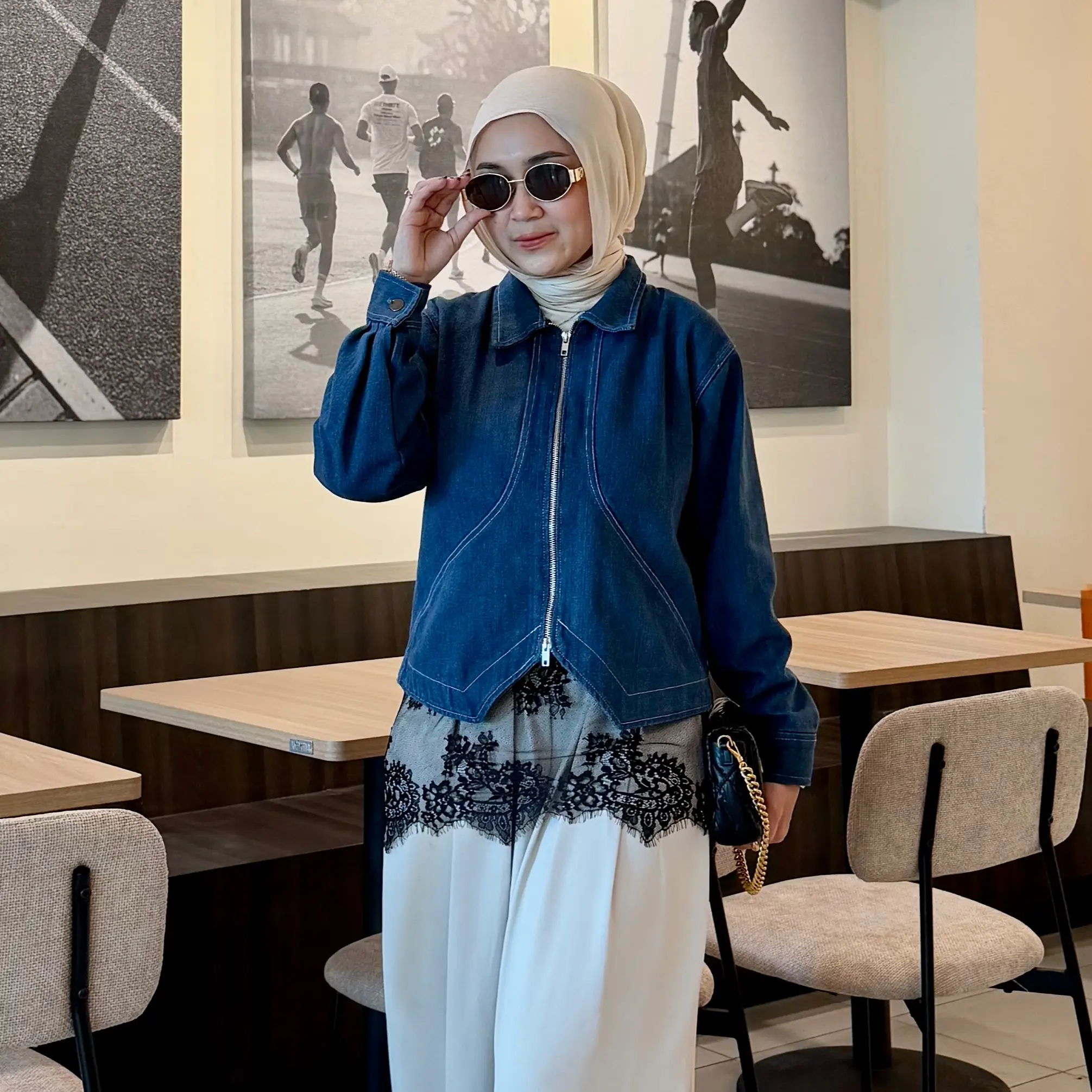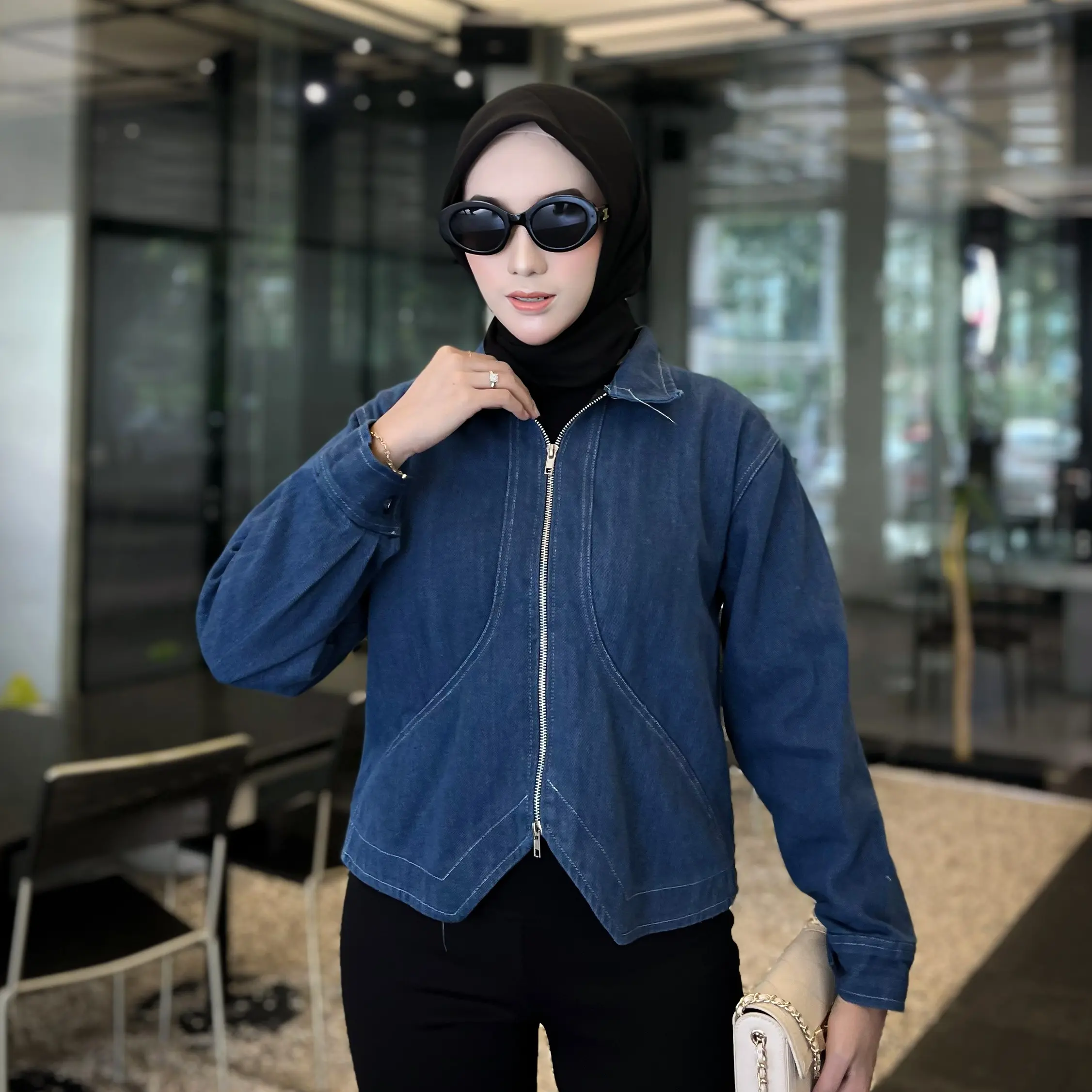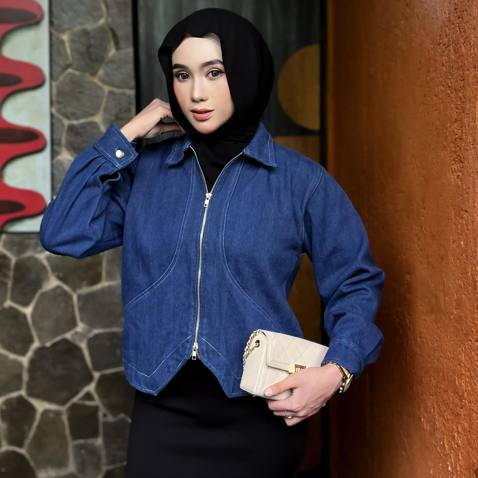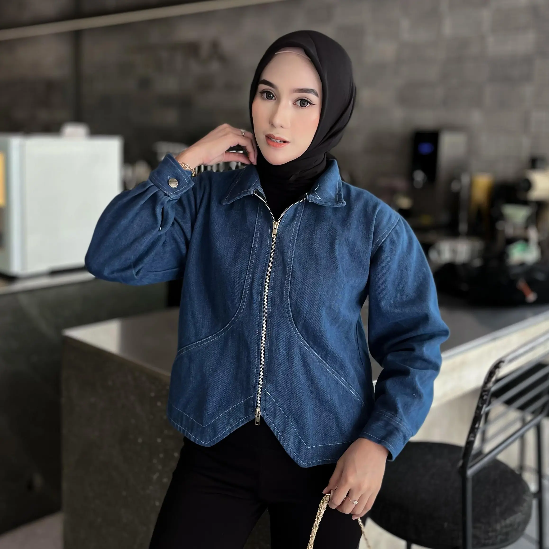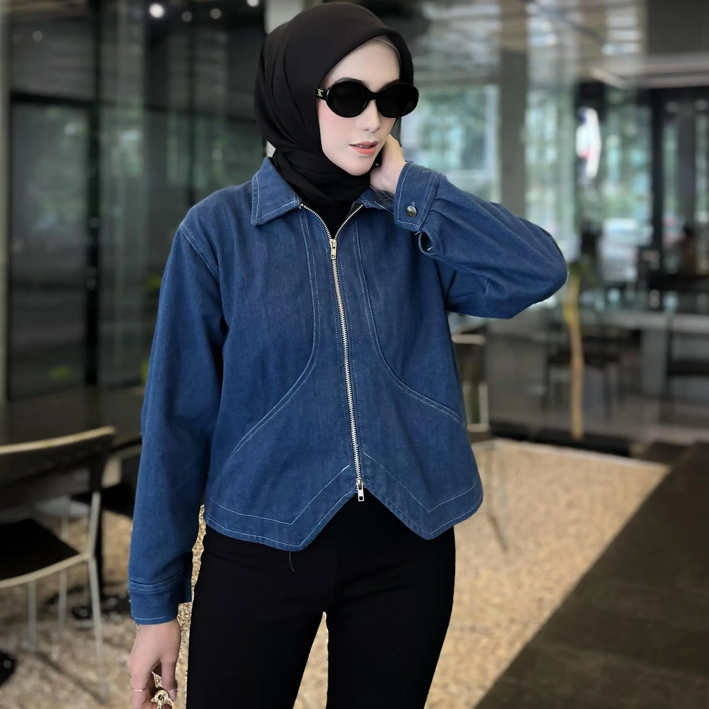 ·Jenis: Jaket jeans dengan double zipper yang kekinian