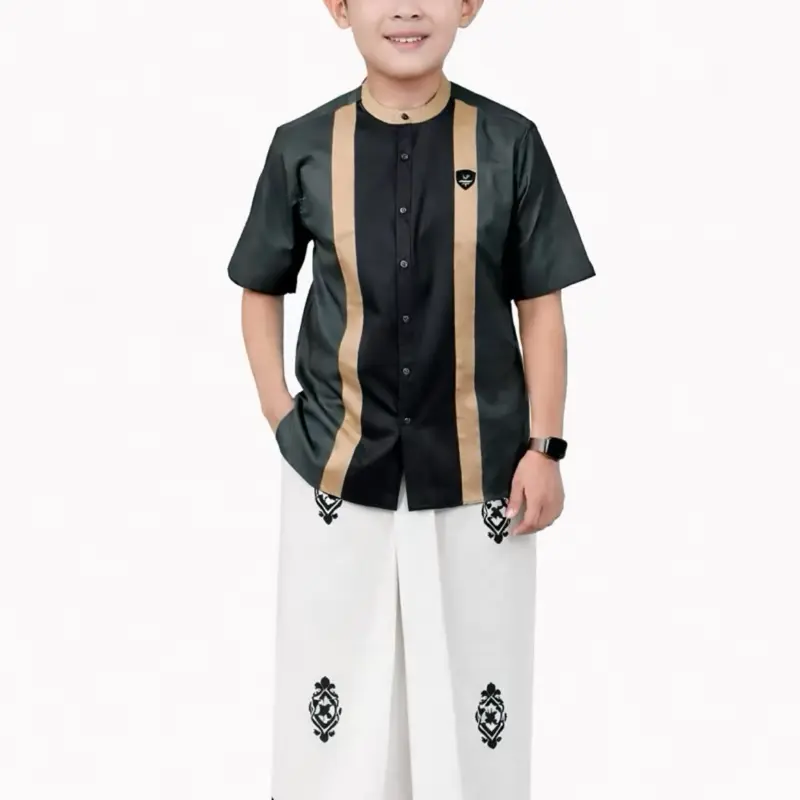 ✨ Setelan Baju Muslim Terbaru untuk anak usia 5-14 tahun. Set ini termasuk Sarung dan Koko. Motif Nuaiman menambah keunikan setelan ini. Cocok untuk anak-anak yang mencari pakaian Muslim yang nyaman dan modis.