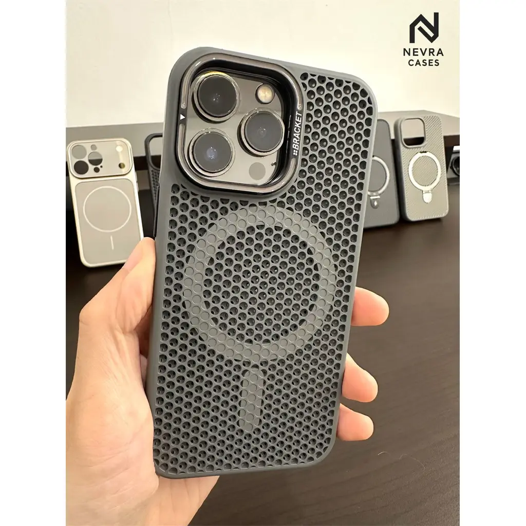 NEVRA Cooling Mesh Lens Stand Case - Casing Jaring Anti Panas dengan Bracket Kamera MagSafe