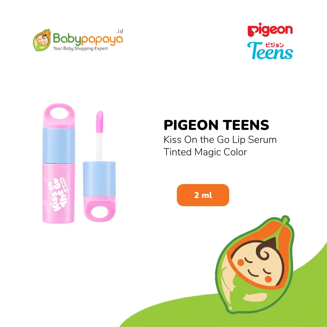 Pigeon Teens Kiss On The Go Lip Serum adalah serum bibir ringan dan nyaman i dengan Tinted Magic Color yang menyesuaikan dengan warna alami bibir untuk tampilan segar dan sehat. Diperkaya dengan Bisabolol dan 8 Bahan Alami, serum ini membantu melembapkan, menenangkan, dan menutrisi bibir, menjadikannya ideal untuk remaja.