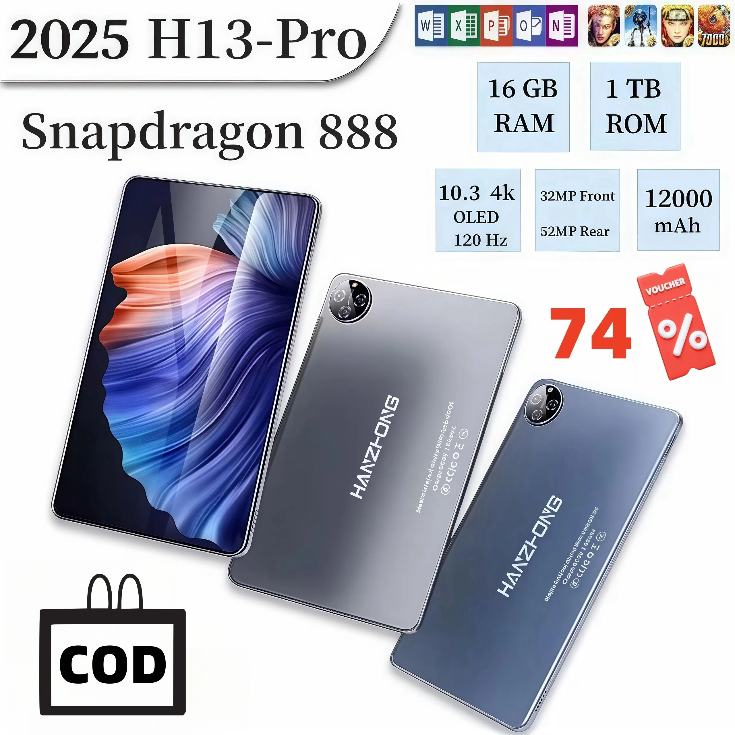 2025 H13 Pro 10.3" Tablet [16GB+1TB]1Pengalaman Pro Layaknya PC|120Hz OLED RealColor FullView Display l Ultra-tipi l Tablet cerdas HD l Hiburan Kantor Wifi Bluetooth Kamera Layar tablet tablet  1  jutaan