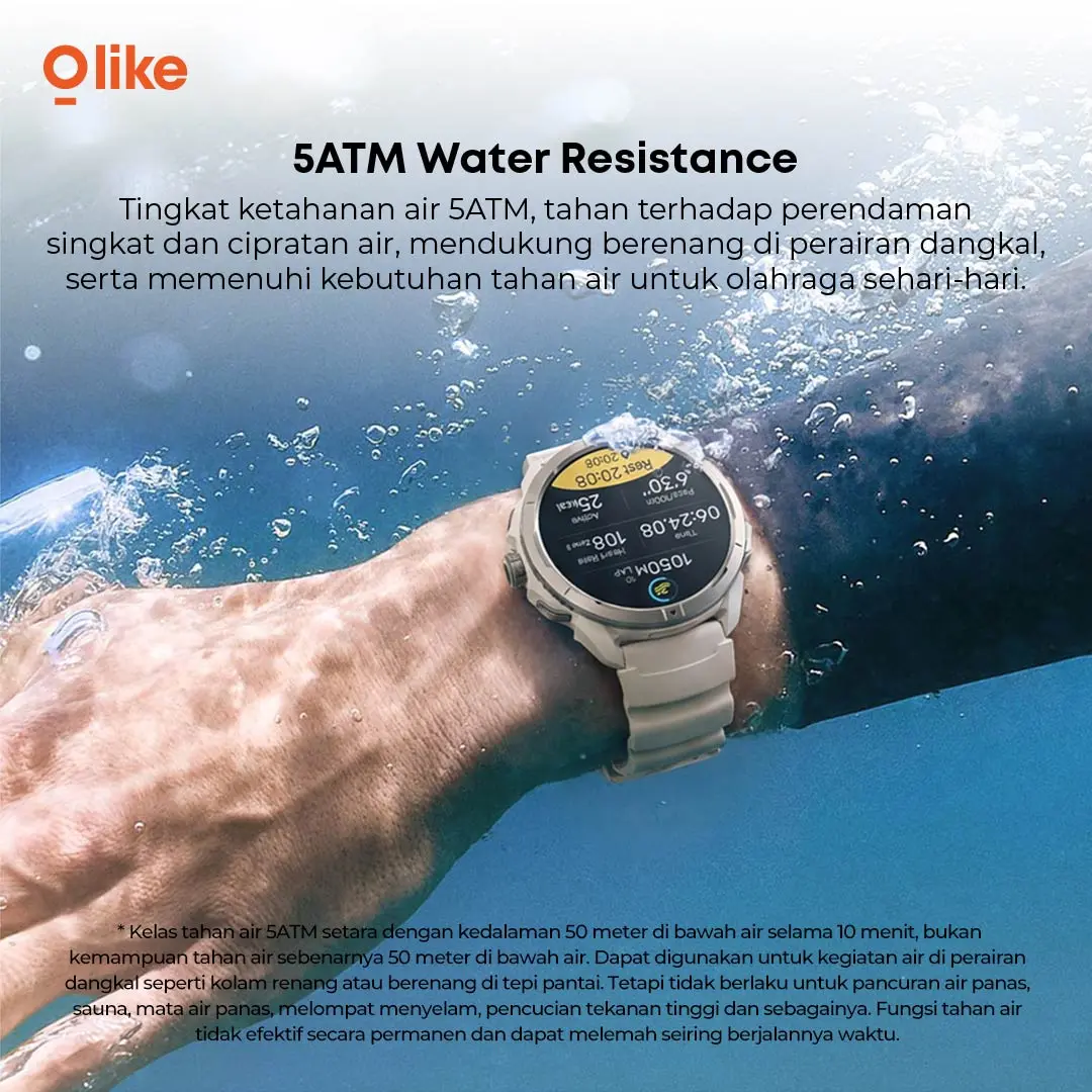 ·Waterproof 5ATM : Aman digunakan saat terkena hujan hingga aktivitas seperti berenang. Hal ini memberikan fleksibilitas lebih bagi pengguna yang aktif tanpa perlu khawatir terhadap kondisi lingkungan.