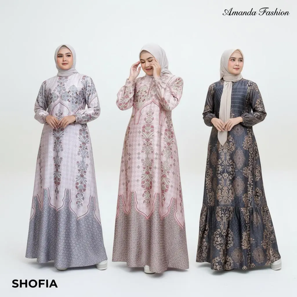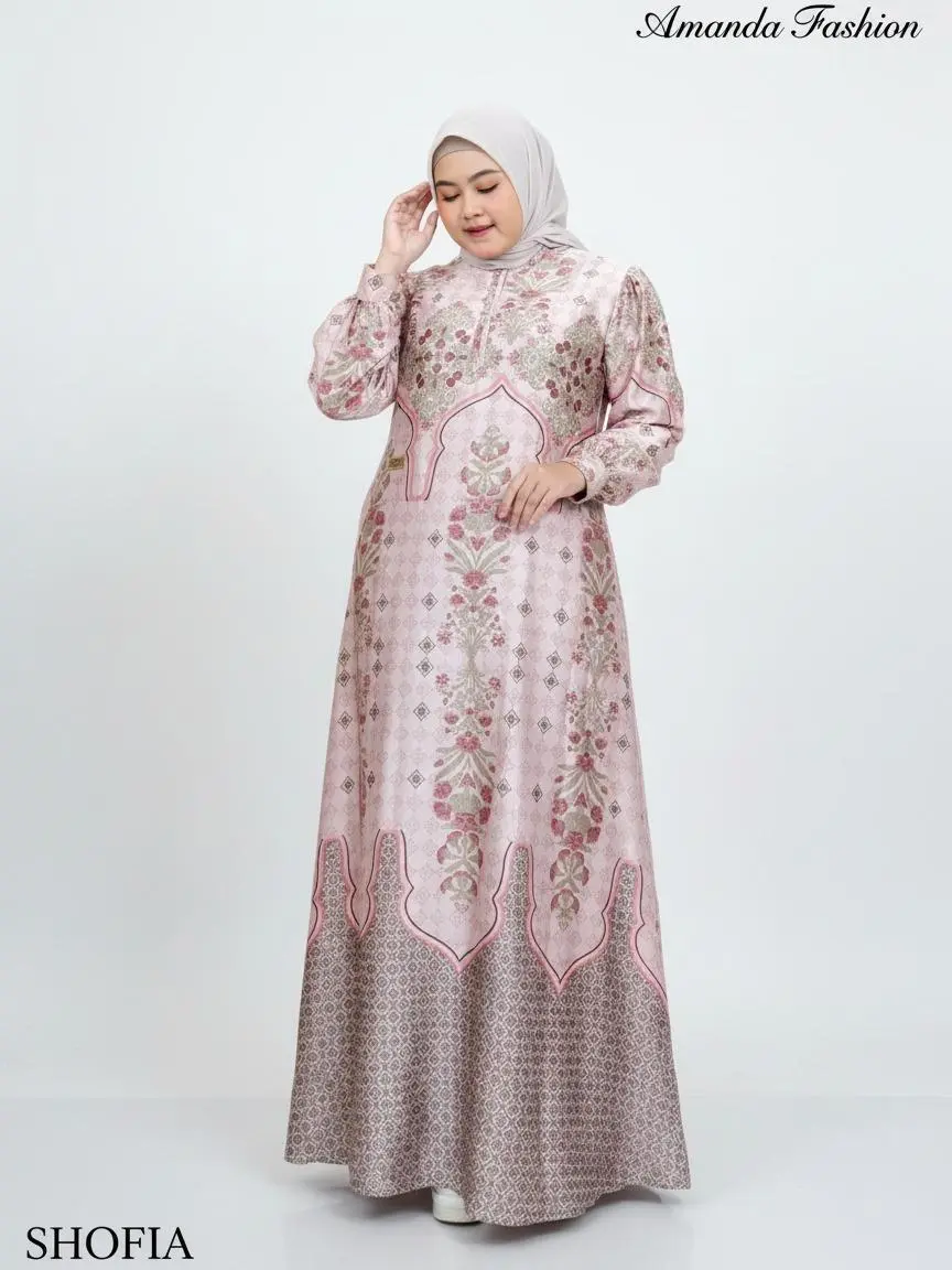 Gamis Amanda Shofia Silky motif premium Printing Tidak Luntur Dan Tidak Mudah Kusut (Free Pouch, Goodie Bag)