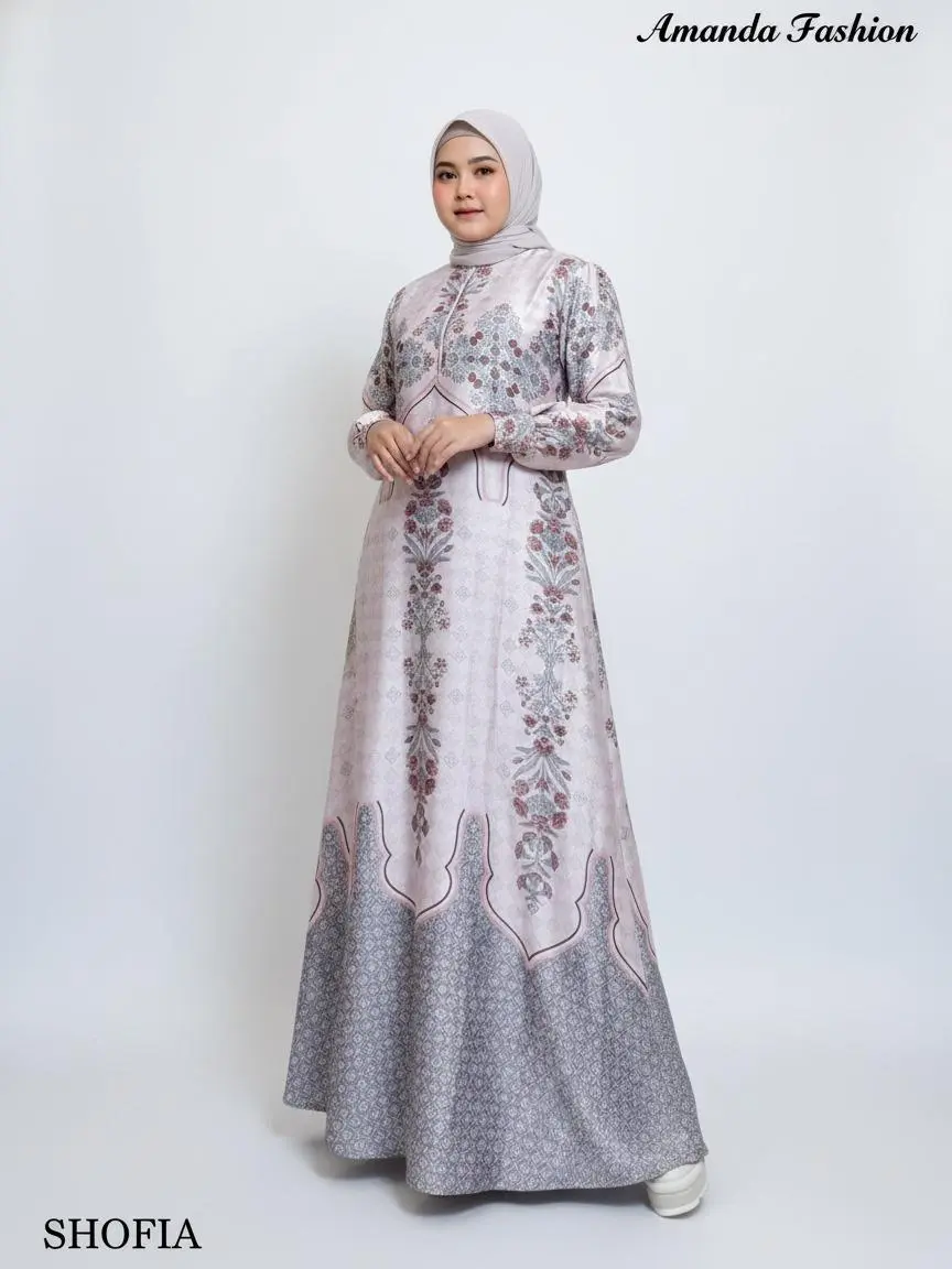 Gamis Amanda Shofia Silky motif  premium Printing Tidak Luntur Dan Tidak Mudah Kusut (Free Pouch, Goodie Bag)