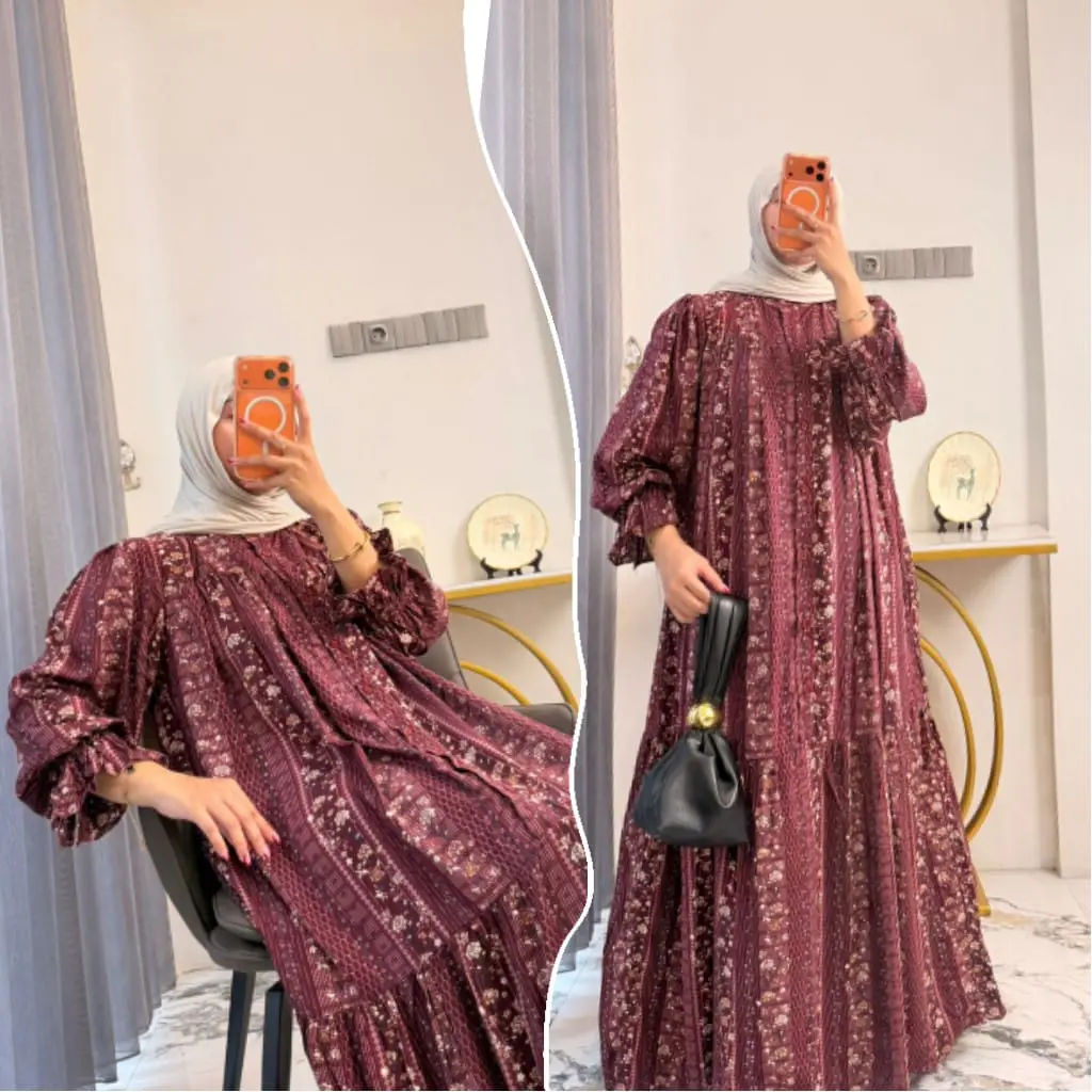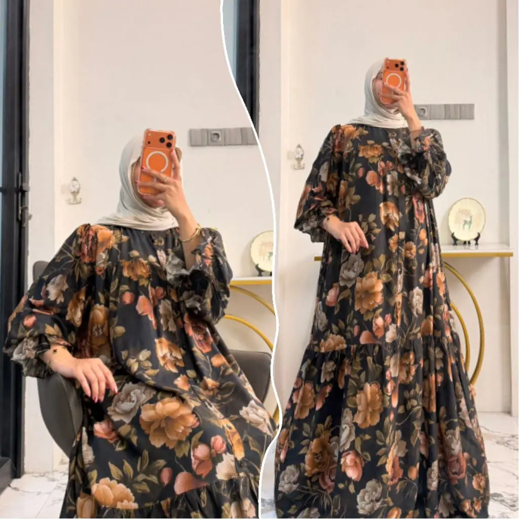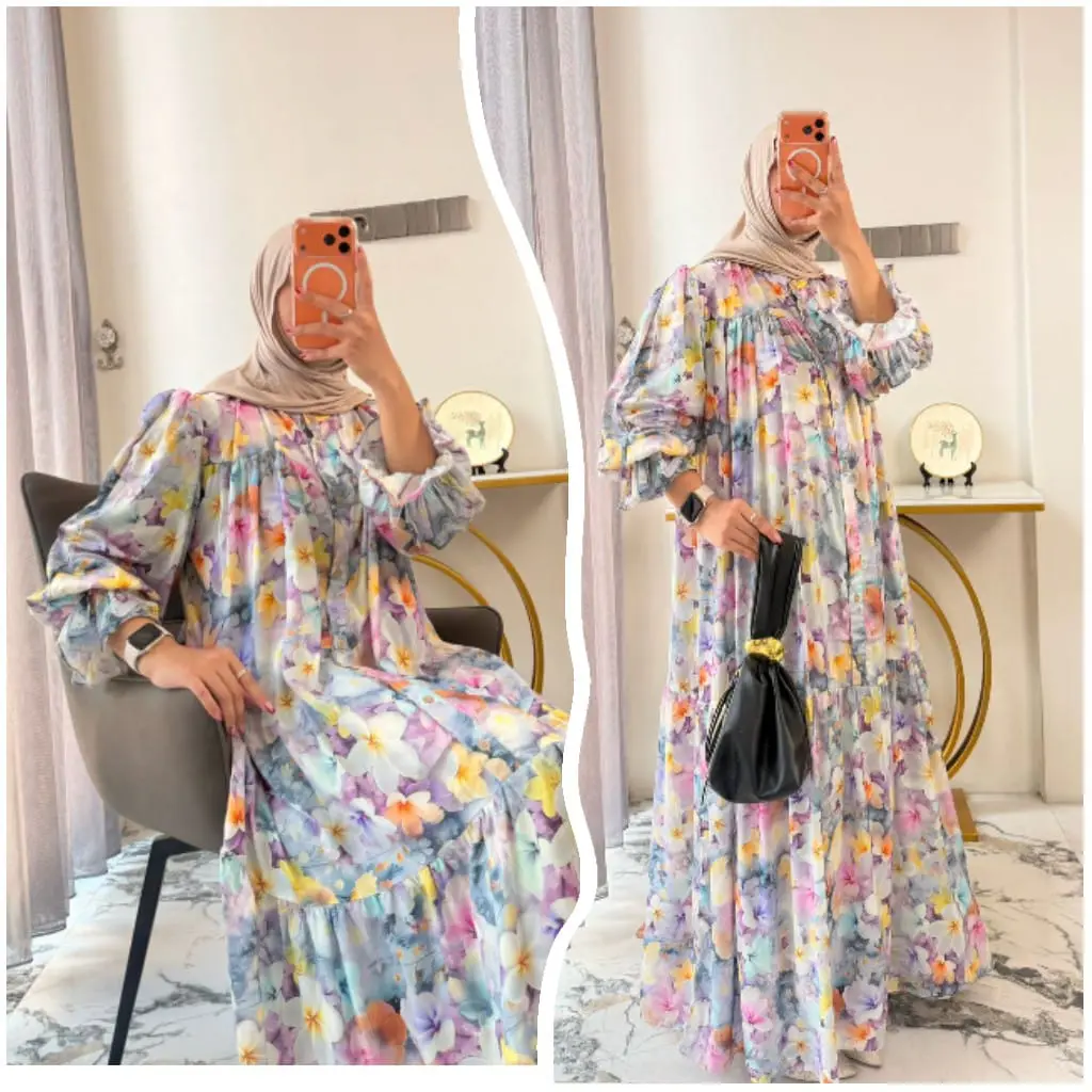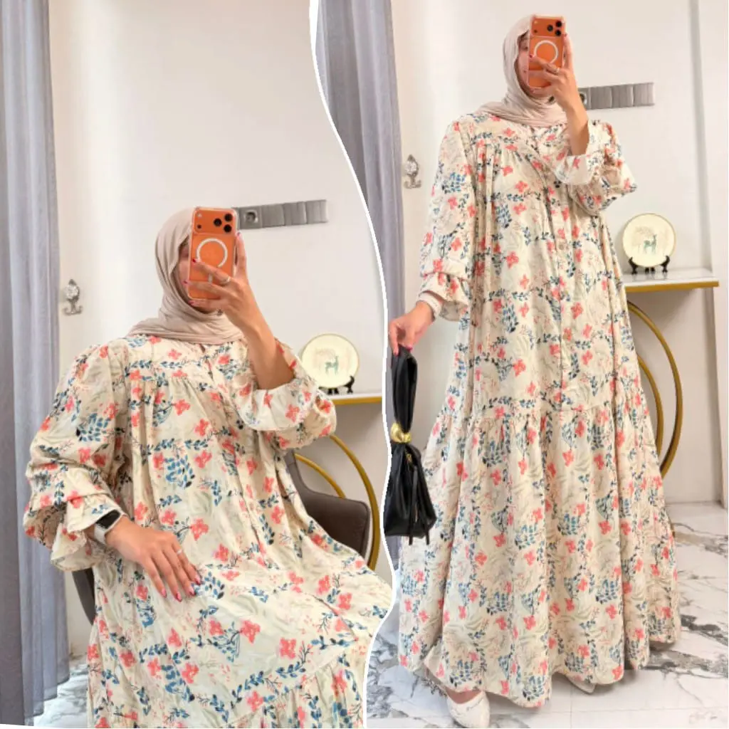 New Dres Leony Gamis Raya Series Lengan Ruffle Gamis Rayon Motif Daisy Gamis Muslimah Syari