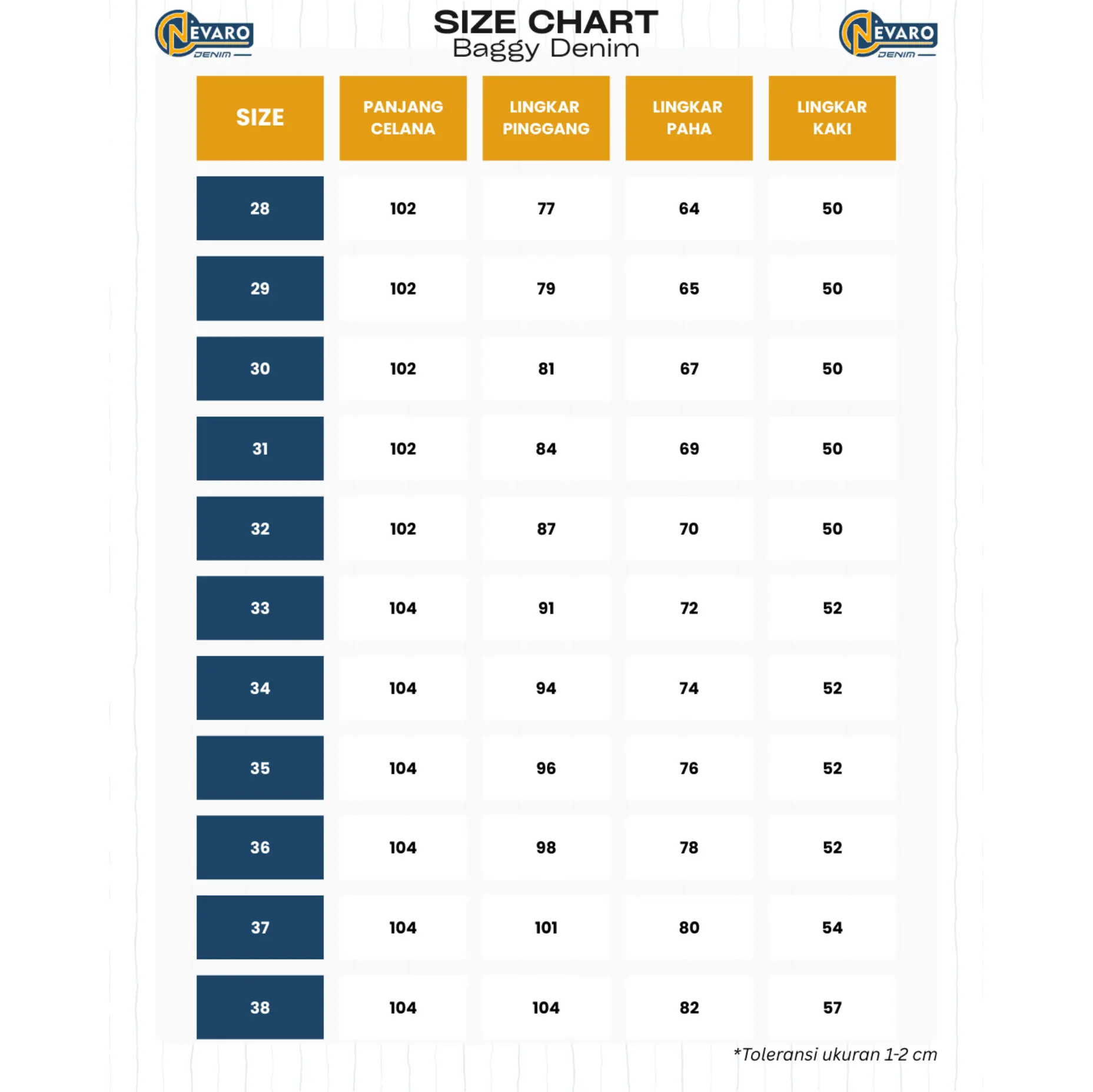 Tersedia Ukuran 28-38