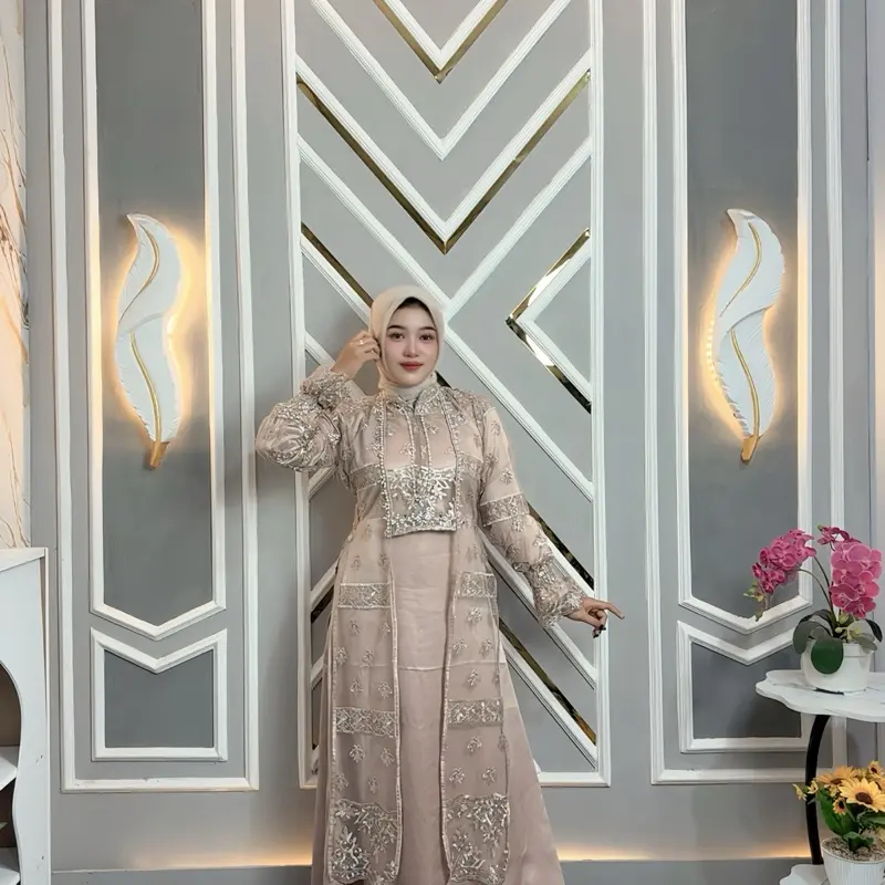 ·Gaun Elegan Payet Mutiara: Set ini termasuk gamis inner dan outer, sempurna untuk Lebaran 2026. Gaun ini dilengkapi dengan payet mutiara yang menambah elegansi. 🌟