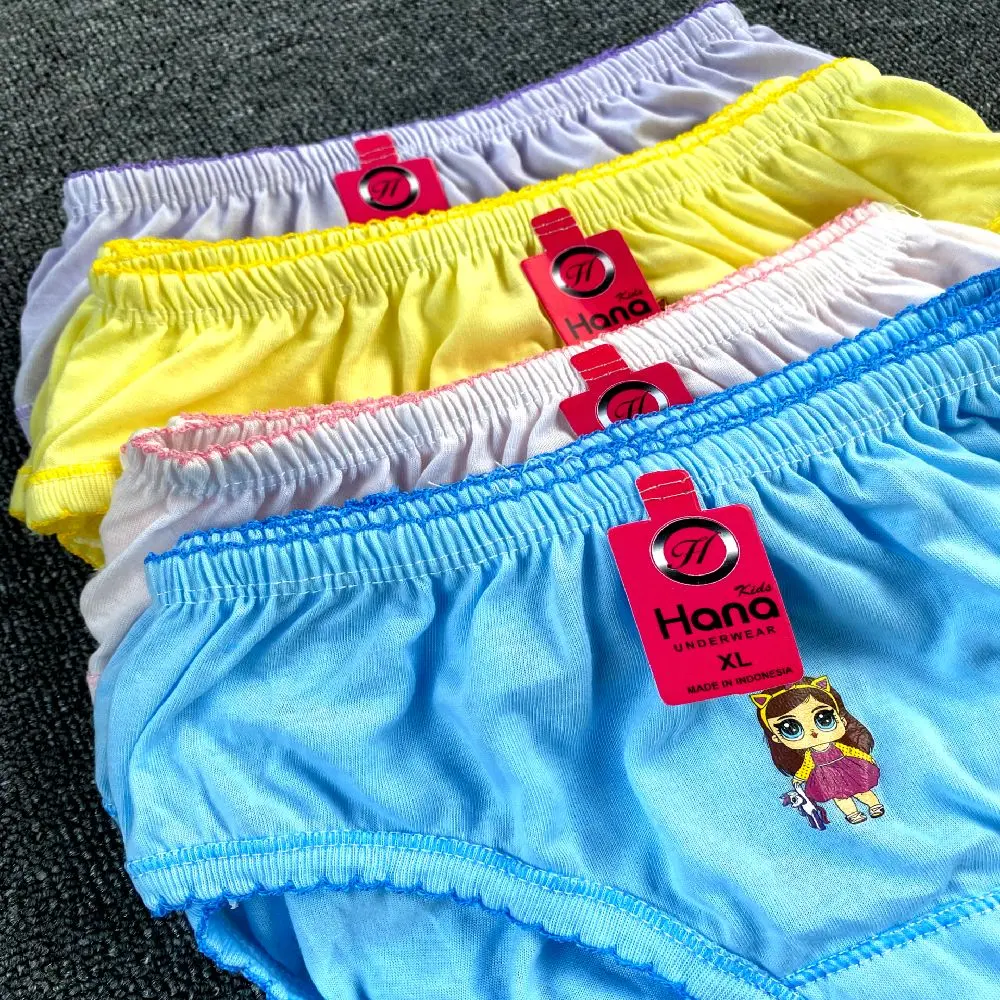 (Promo 12 Pcs) Celana Dalam Anak Perempuan Usia 2 s/d 11 Tahun CD Anak Perempuan Ukuran M L XL XXL/3L Bahan Katun Polos Warna Ceria Daleman