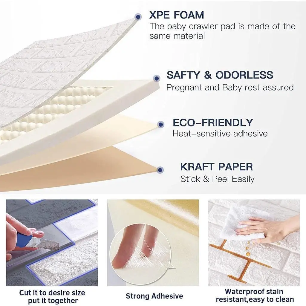 β¨ Walpaper dinding 3D foam bata 2.5mm. Ukuran bata: 70cm x 77cm. Bahan: Busa XPE, ketebalan 2.5mm tapi sangat ringan. Dengan lem super lengket dan tahan lama. Bahan dan lem ramah lingkungan. Kepadatan dan elastisitas tinggi, melindungi anak-anak dari benturan tembok/dinding.