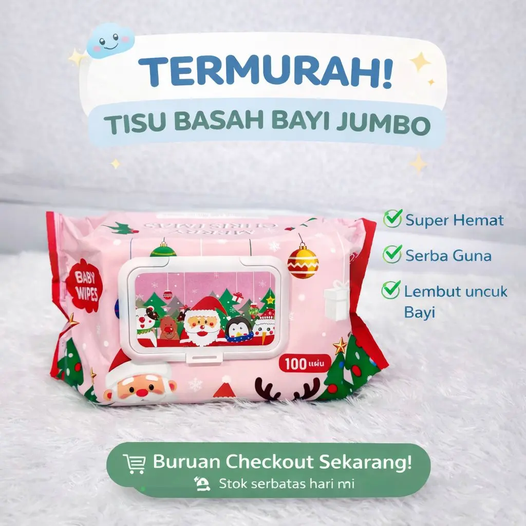 Tisu Basah Jumbo Baby Wipes adalah solusi praktis dan hemat untuk kebutuhan harian bayi dan keluarga. Dengan ukuran besar, tisu ini lebih hemat pemakaian. Tekstur lembut dan tebal, tidak mudah sobek. Aman untuk kulit bayi dan anak. Cocok untuk membersihkan tangan, mulut, dan area popok.