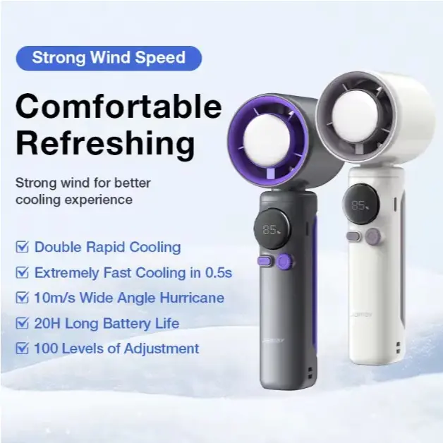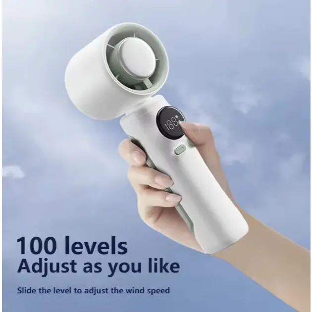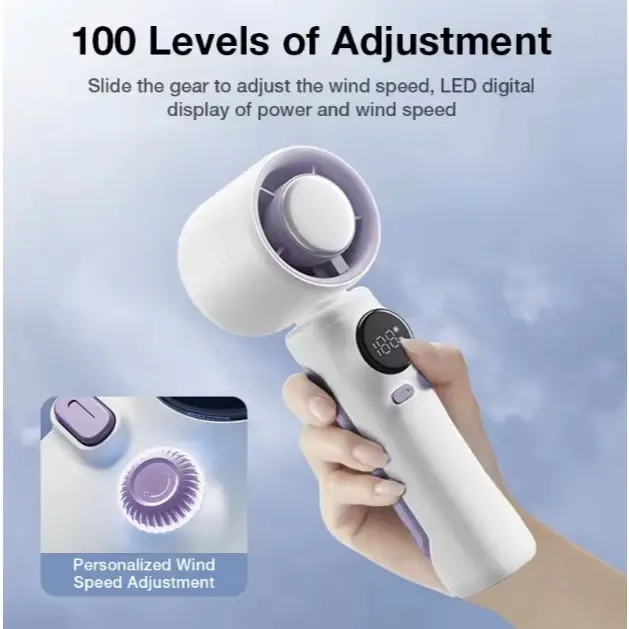 Kipas Genggam Menyediakan 1-100 Pengaturan Kecepatan yang Dapat Disesuaikan Kipas ini memiliki desain turbin yang kuat yang memaksimalkan aliran udara dan menyediakan daya berkecepatan tinggi untuk pendinginan yang intens. Kipas portabel ini dengan cepat menyegarkan setiap inci udara dengan kecepatan hingga 10m/s.