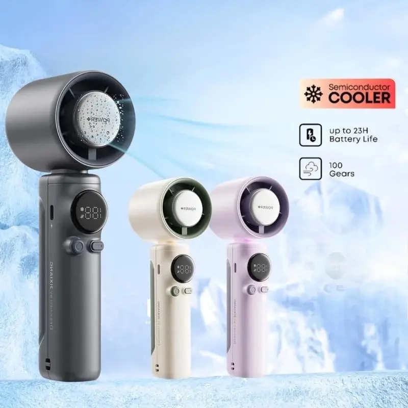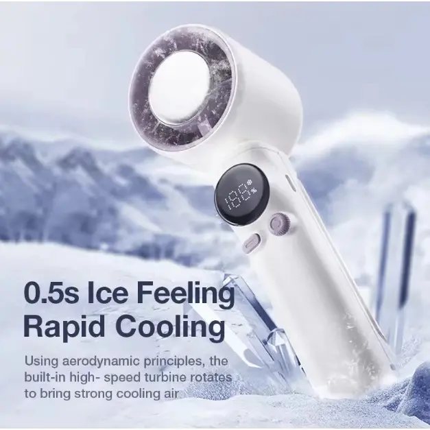 Kipas Turbo Genggam Portabel Kipas Pendingin Es Mini Baterai 4000mAh Kipas Tangan Kecil Pribadi yang Dapat Diisi Ulang dengan Layar Digital
