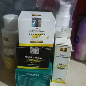Paket komplit Glowing 6 in 1 (Moisturizer Ceramide, Day Cream Sunscreen spf 30, Night Cream retinol, Serum Vit C + Safron, Toner & Facial Foam)Β adalah produk perawatan wajah 6 produk dalam 1 paket, yang dapat membantu mengurangi kulit kusam, membantu mengurangi flek, membantu mengatasi masalah jerawat, membantu menghilangkan kerutan, Membantu melembabkan, Membantu mencerahkan