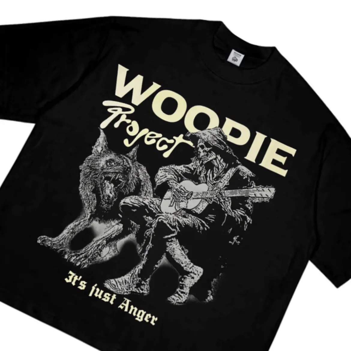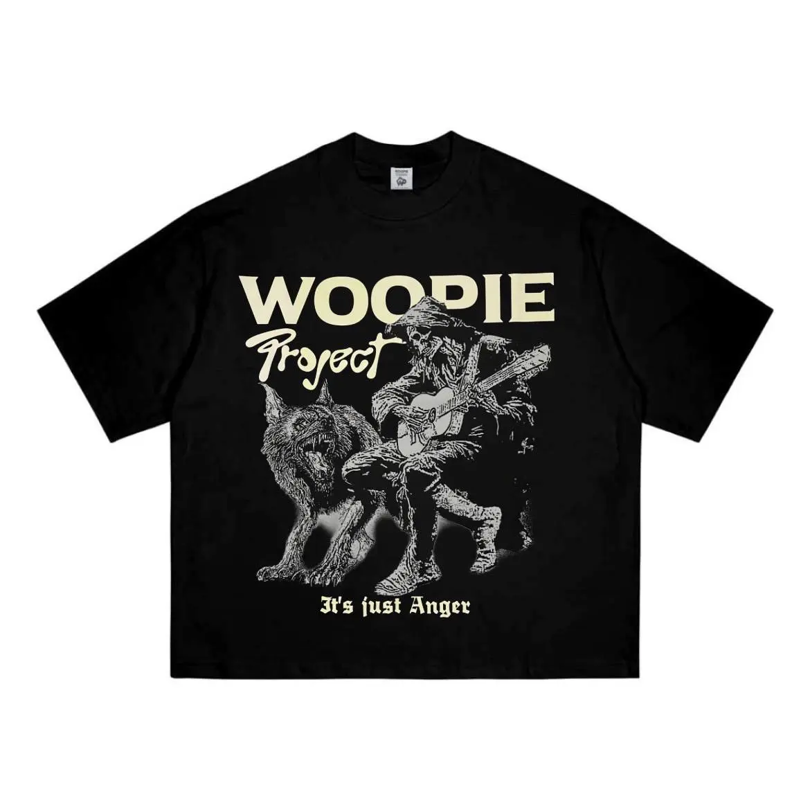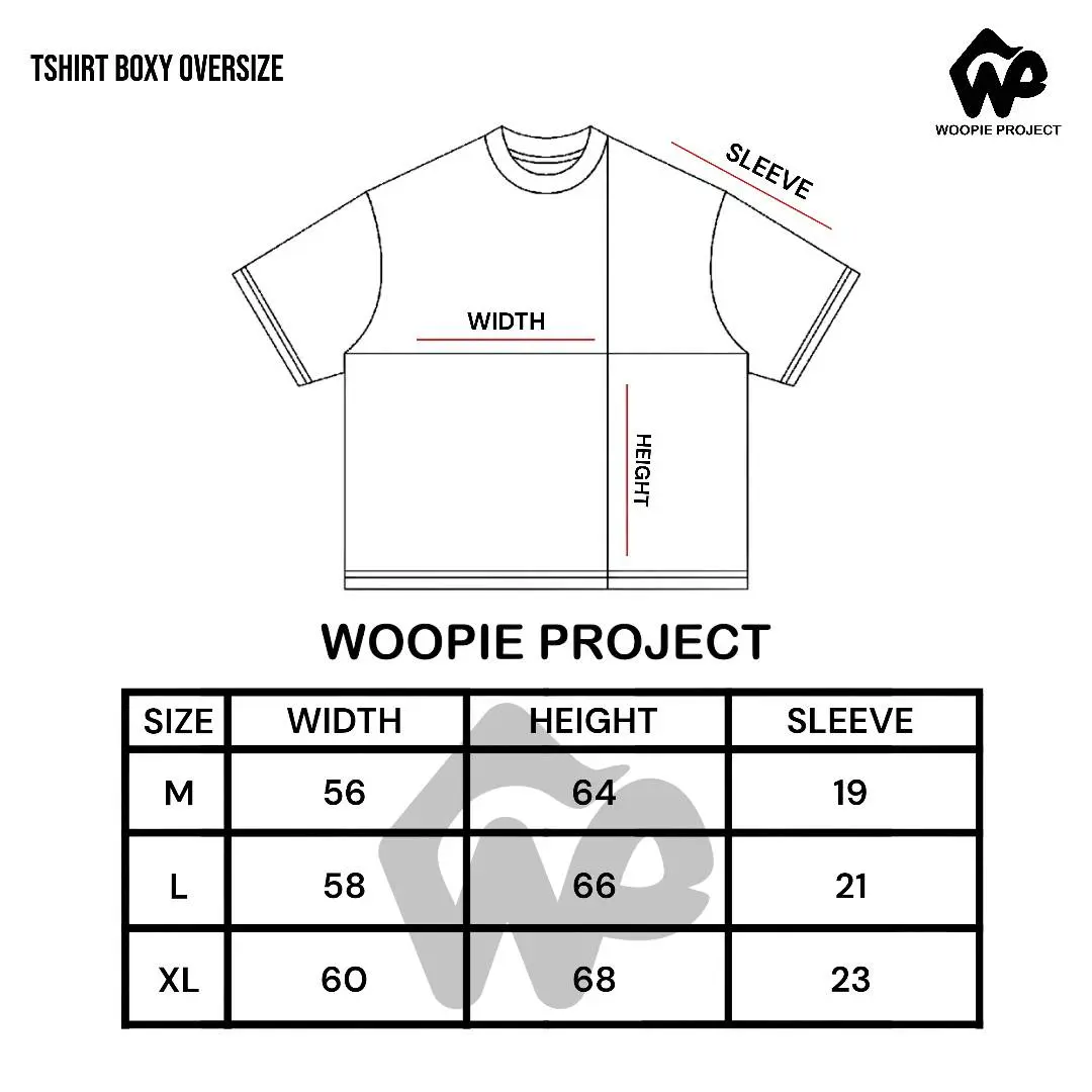 Boxy Fit Oversize Pria Wanita Woopie Project Hitam Katun Combed 20s 200gsm Kaos Distro Cowok