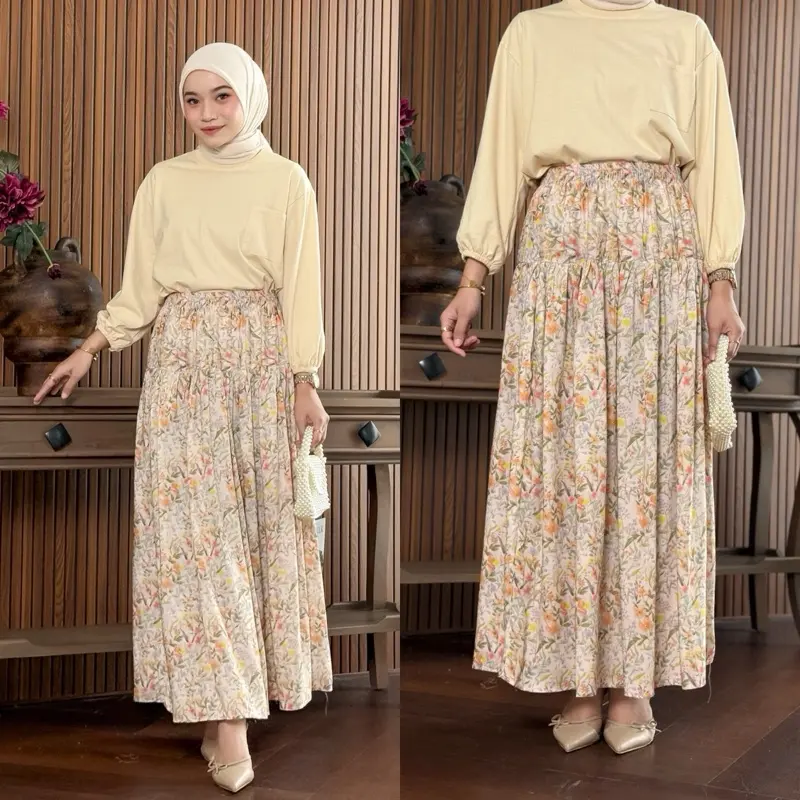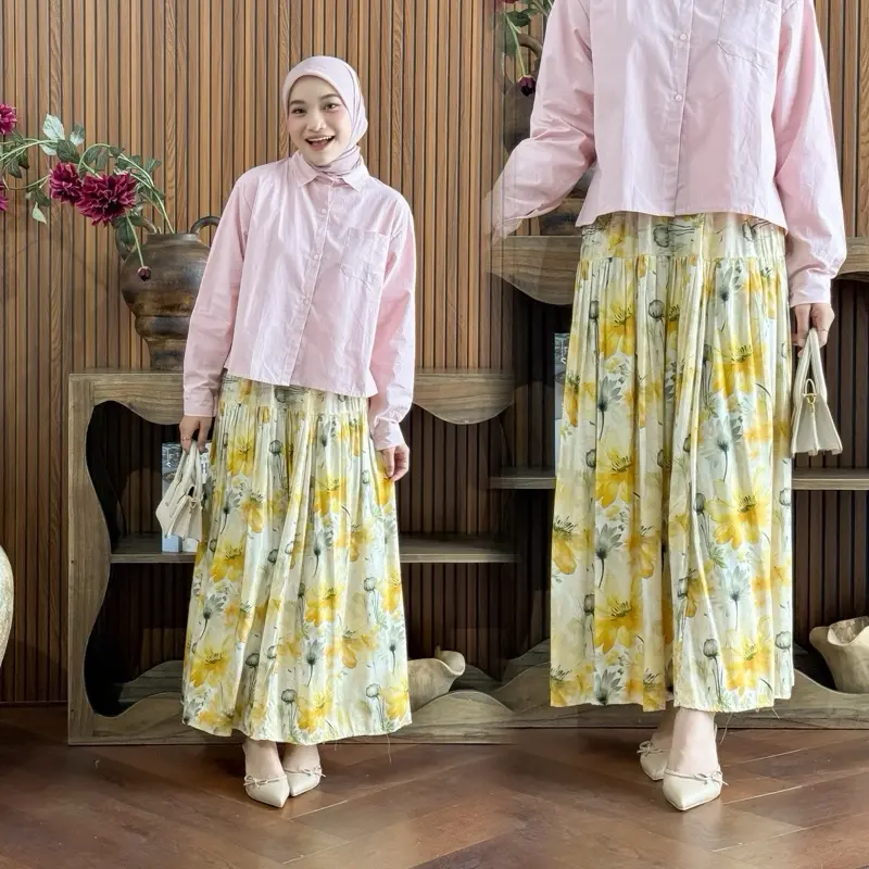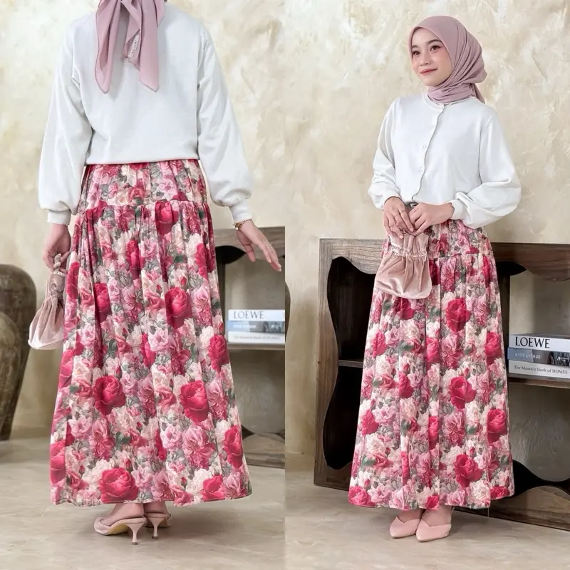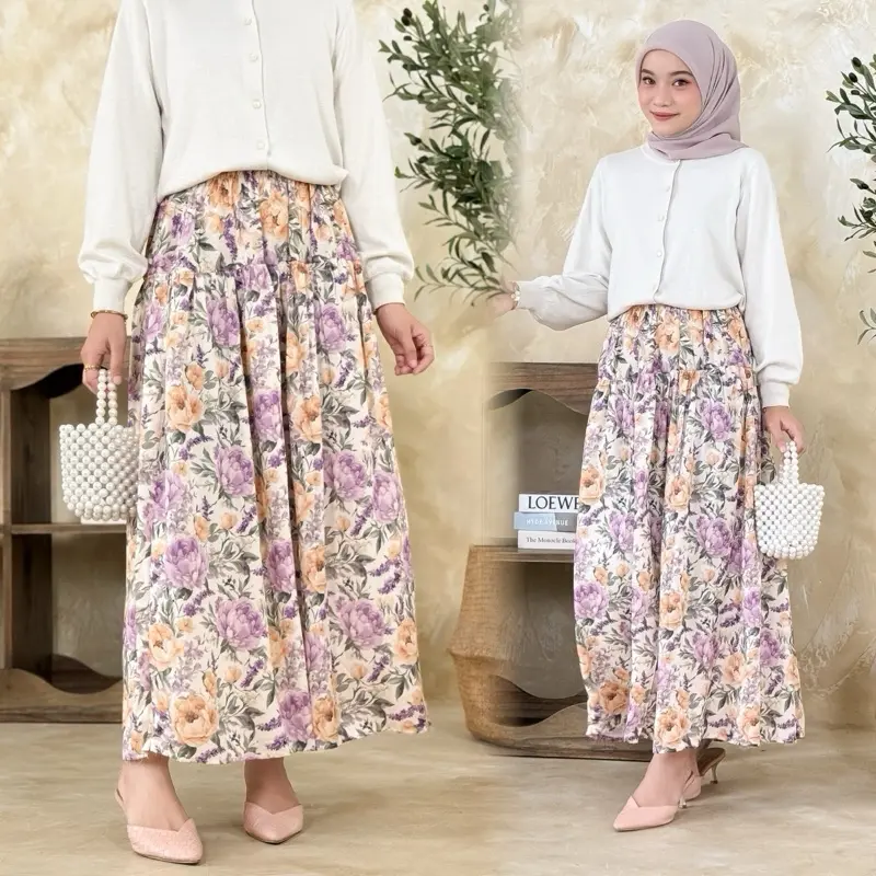 Rok ini adalah pilihan yang tepat untuk Anda yang mencari rok wanita lebar mayung dengan motif bunga kekinian.