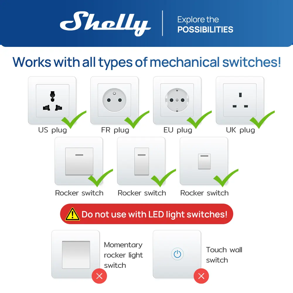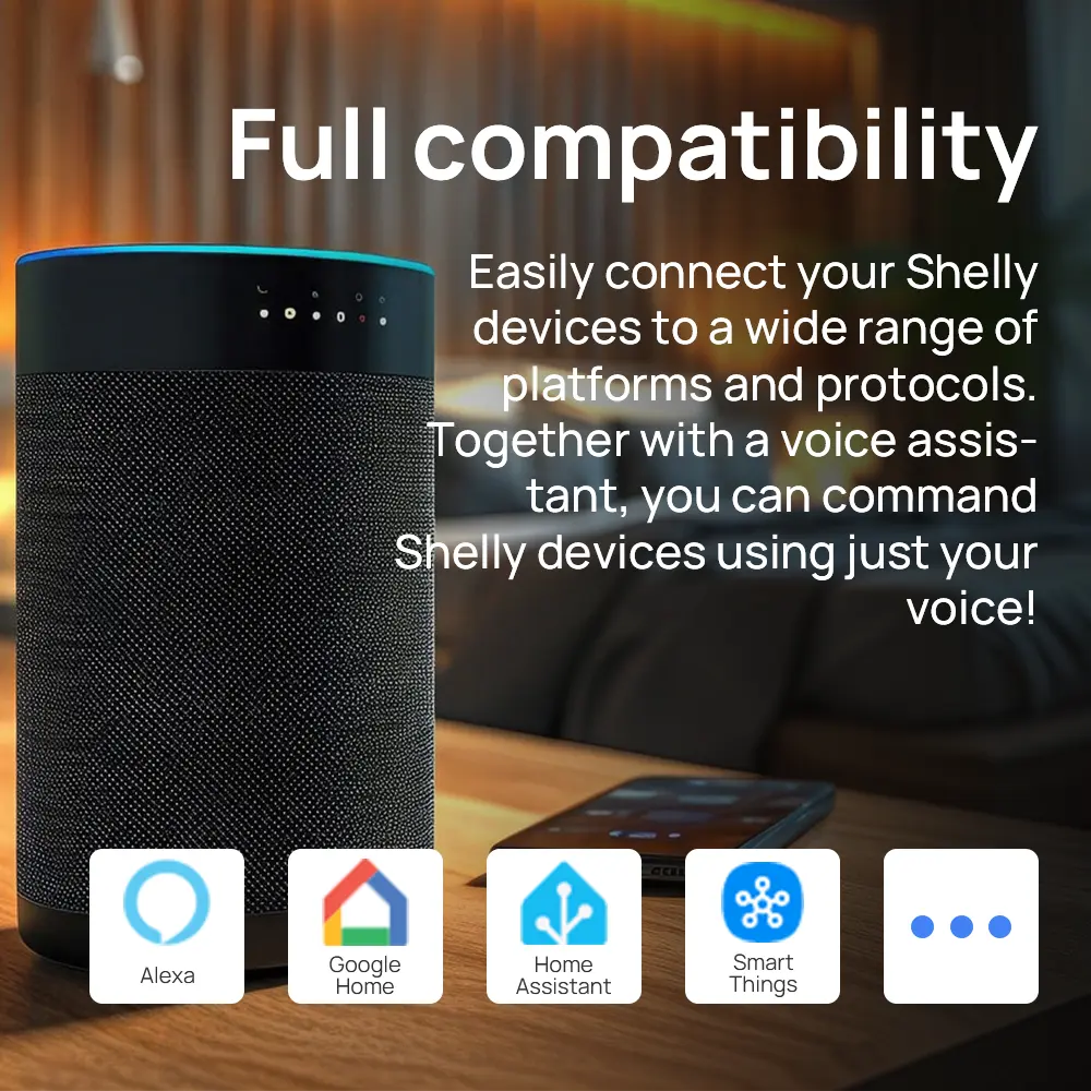 ·App and voice control: Control your devices from anywhere with the Shelly Smart Control app or voice assistants such as Alexa, Google Home and SmartThings – no hub necessary.