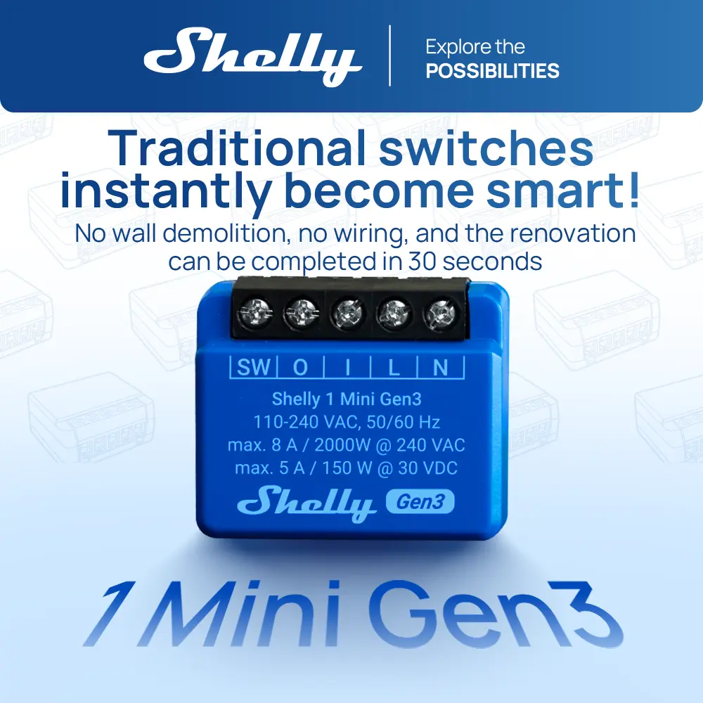 1 Mini Gen3 Advantages: Features dry contacts (potential isolation), allowing control of loads operating at voltages different from the power supply (e.g., garage doors, contactors); supports DC 30V power supply.