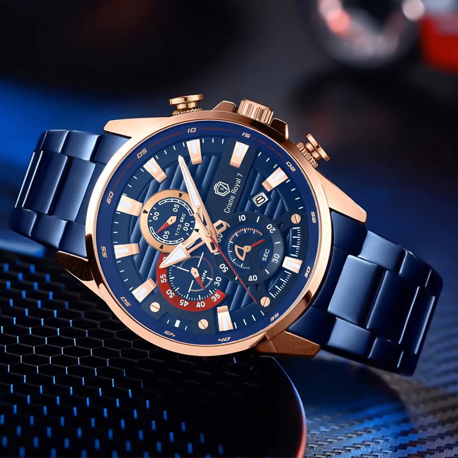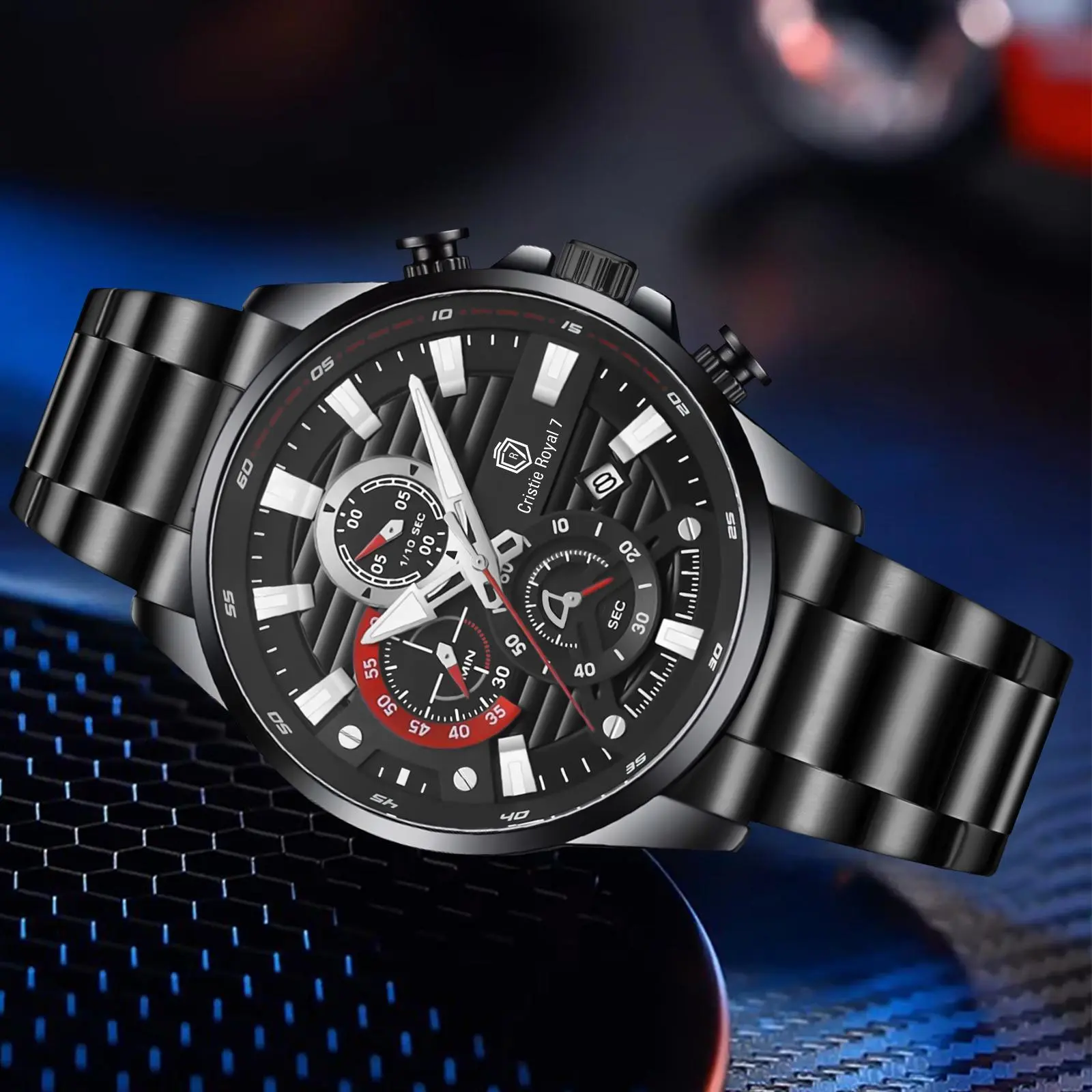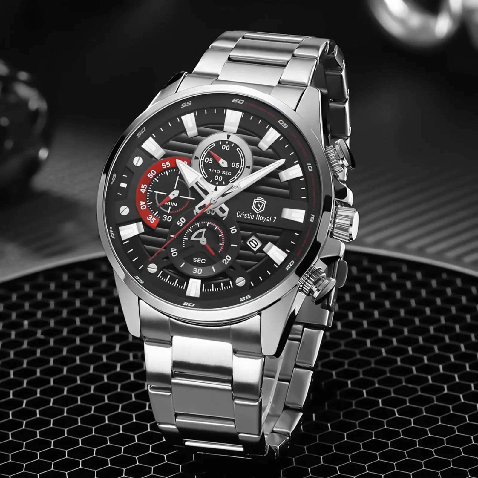Cristie Royal 7 Jam Tangan Pria 9434 Rantai Stainless Kaca Sapphire Steel Chronograph Water Resistant 5ATM