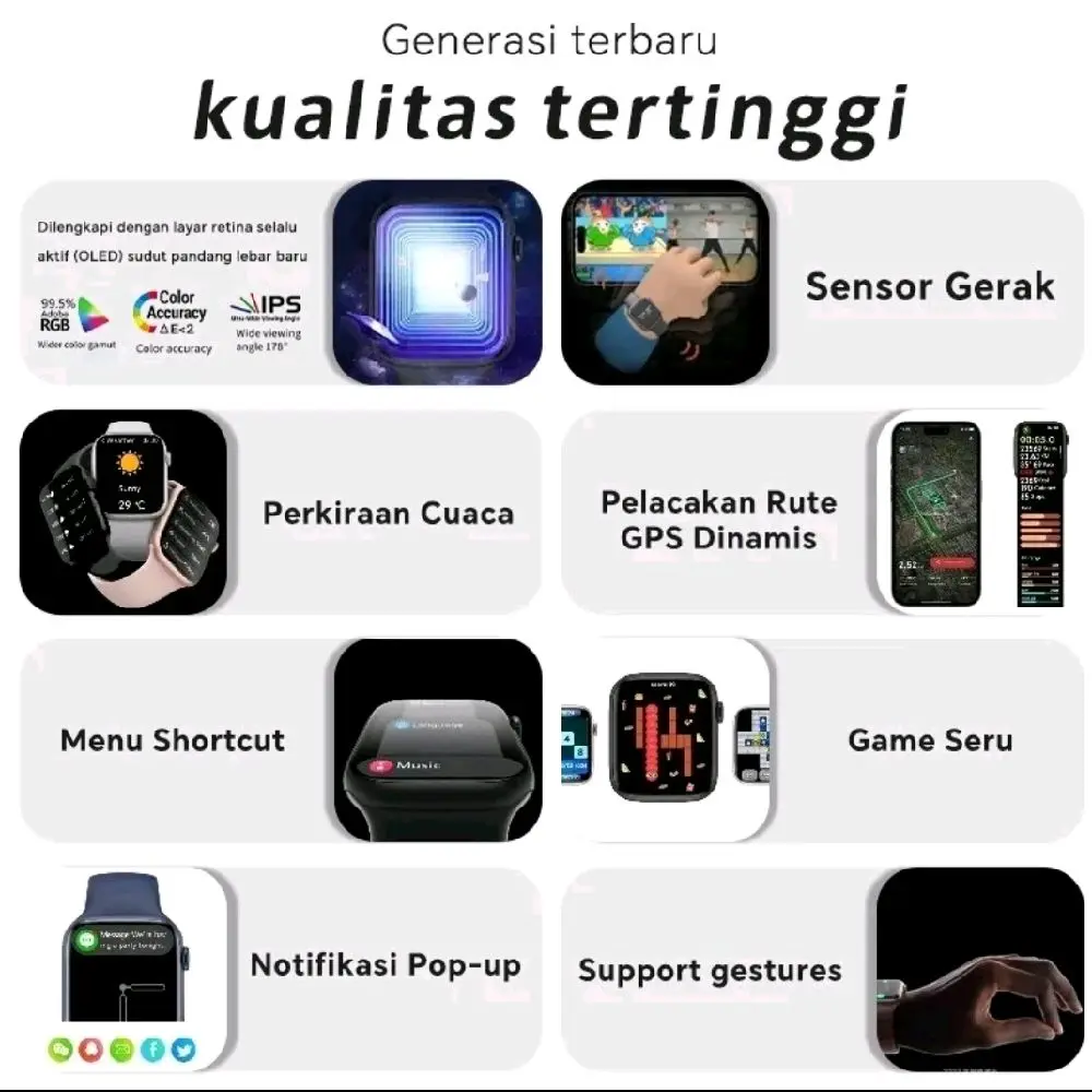 Smartwatch Pro T9 Gen9 Bisa Baca WA Notifikasi Medsos Bluetooth