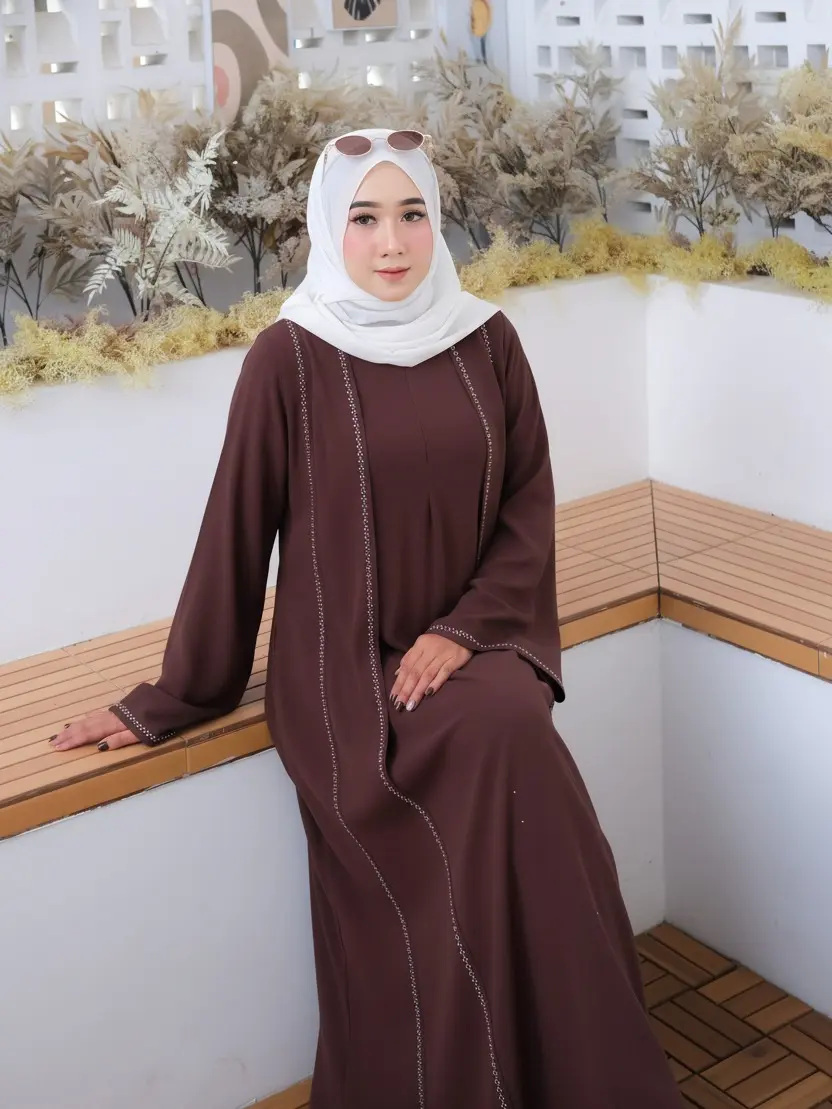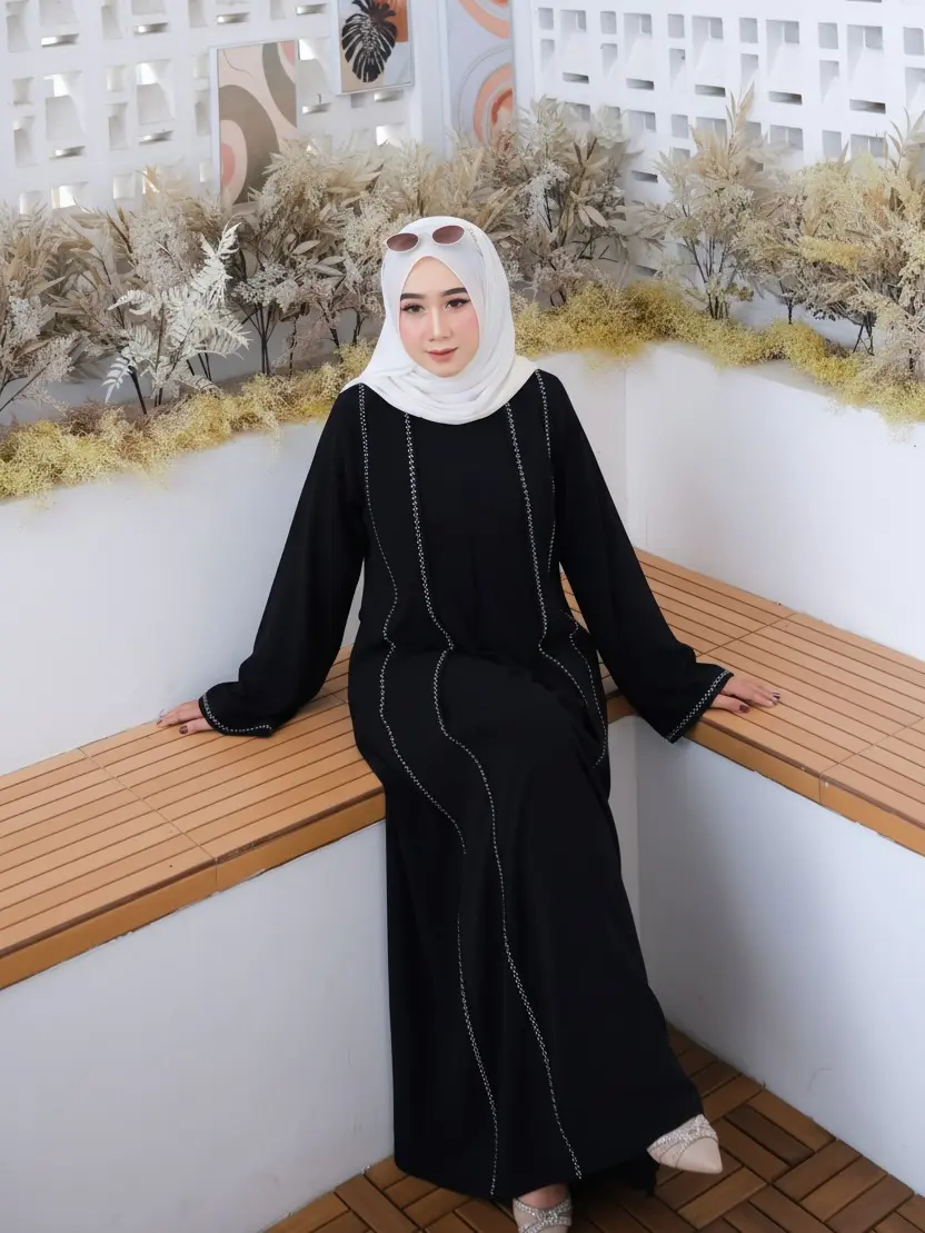 Abaya yang langsung bikin terlihat rapi & elegan — tanpa ribet mix and match.