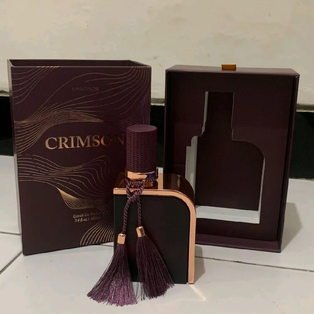 Parfum Crimson MYKONOS Eau de Parfum adalah pilihan yang tepat untuk Anda yang mencari parfum dengan desain elegan dan tassel ungu.