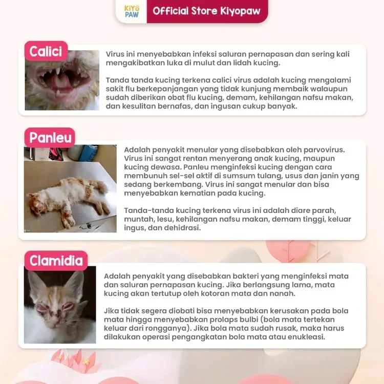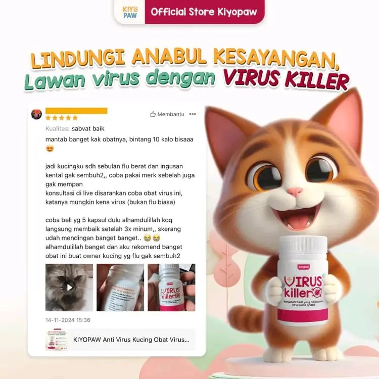 Selain itu VIRUS KILLER juga bisa mengobati penyakit penyakit anabul yg disebabkan virus, seperti :