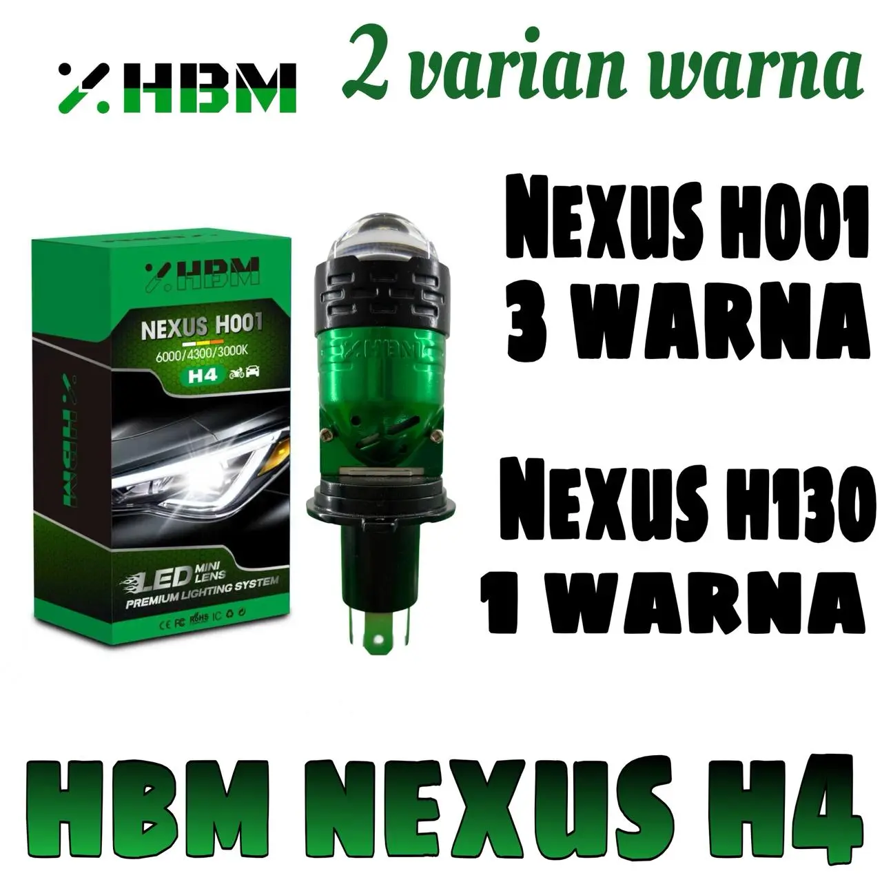 NEXUS H001 CAHAYA LAMPU DEKAT 3 WARNA LAMPU JAUH 1 WARNA PUTIH