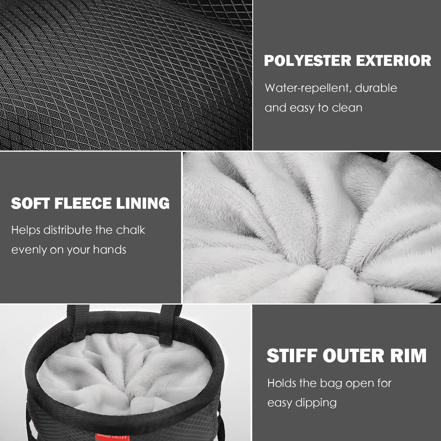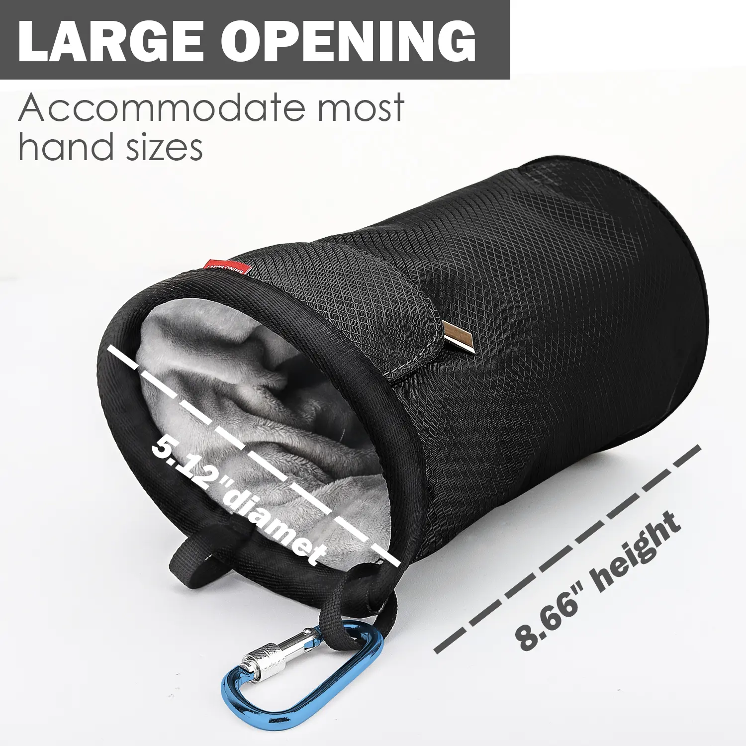 --HIGH-QUALITY: The top quality chalk bag is made of nylon material and come with soft inner. Wear-resistant and water-repellent.