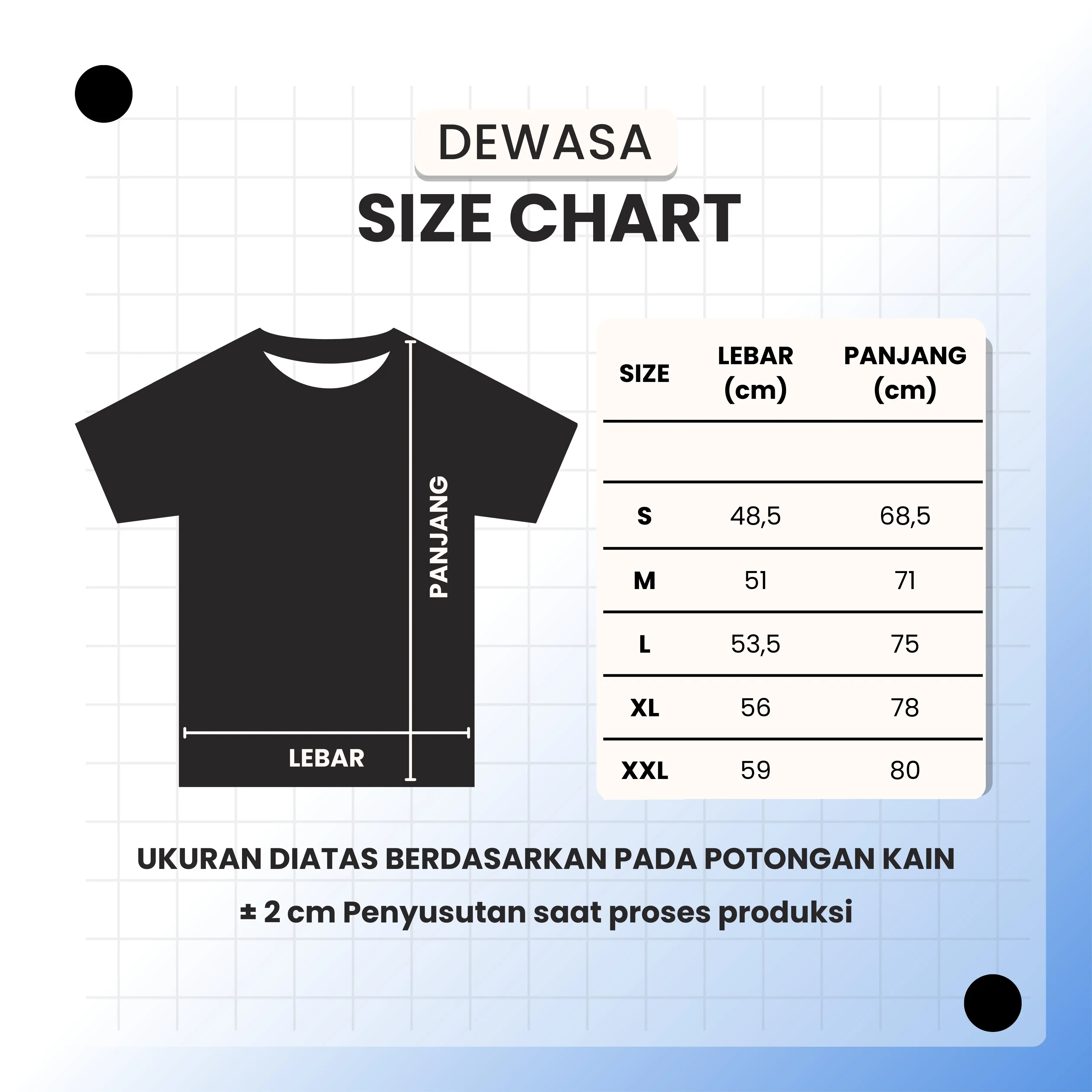 Panduan Ukuran (Lebar Dada x Panjang):