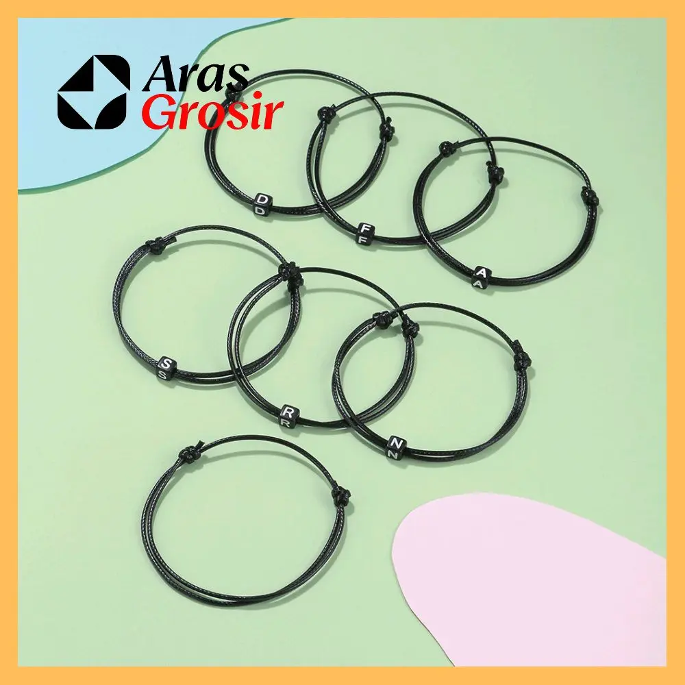 ✨ Gelang Isial Huruf Double Slide untuk pria dan wanita. Bahan tali Korea premium: mengkilap, tahan air, dan tidak gatal. Tali bisa diatur ukurannya. 🌟