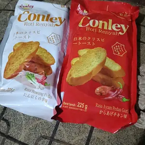 Roti panggang krispi dengan tekstur super renyah dan cita rasa gurih yang bikin nagih. Dibuat dari roti pilihan dan dipanggang dengan sempurna, menghasilkan camilan ringan yang enak dinikmati kapan saja.