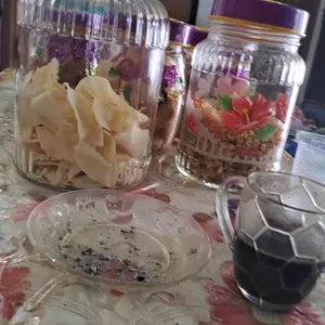 Manis-asam segar dengan potongan buah kering yang chewy.