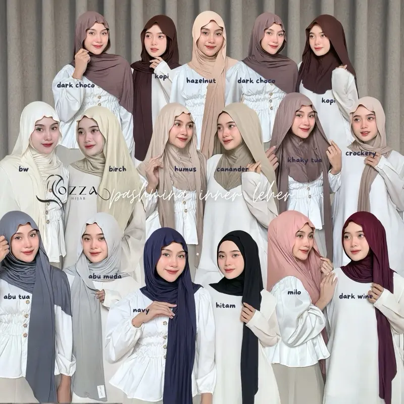 Pashmina ini dilengkapi dengan desain inner leher yang menyatu, memberikan tampilan hijab yang lebih rapi, tertutup, dan praktis tanpa perlu tambahan inner. Desain ini menciptakan kesan simpel namun tetap modern, cocok untuk berbagai kesempatan.