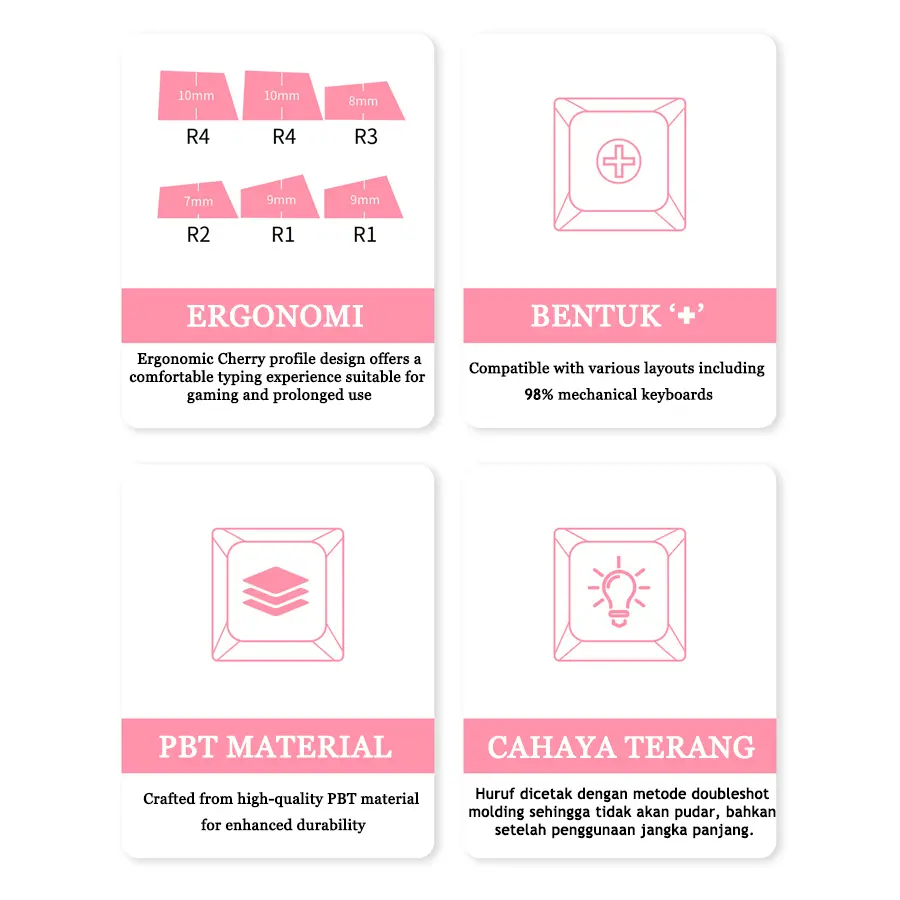 Produk ini hanya berisi keycaps saja, tidak termasuk keyboard.