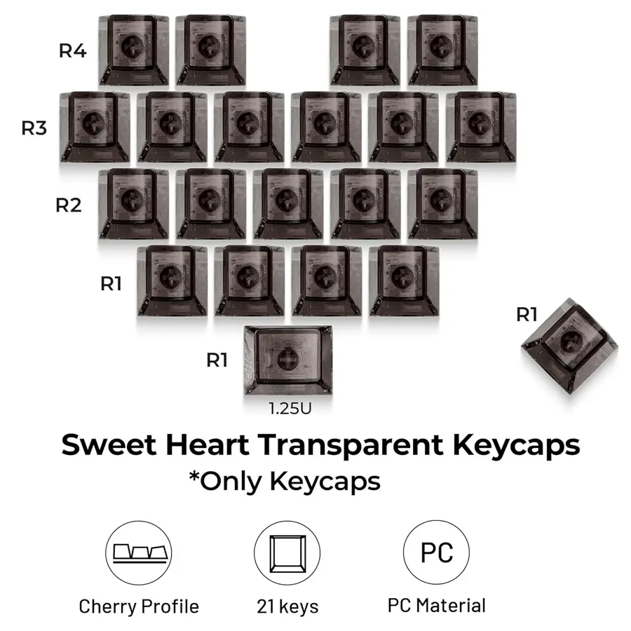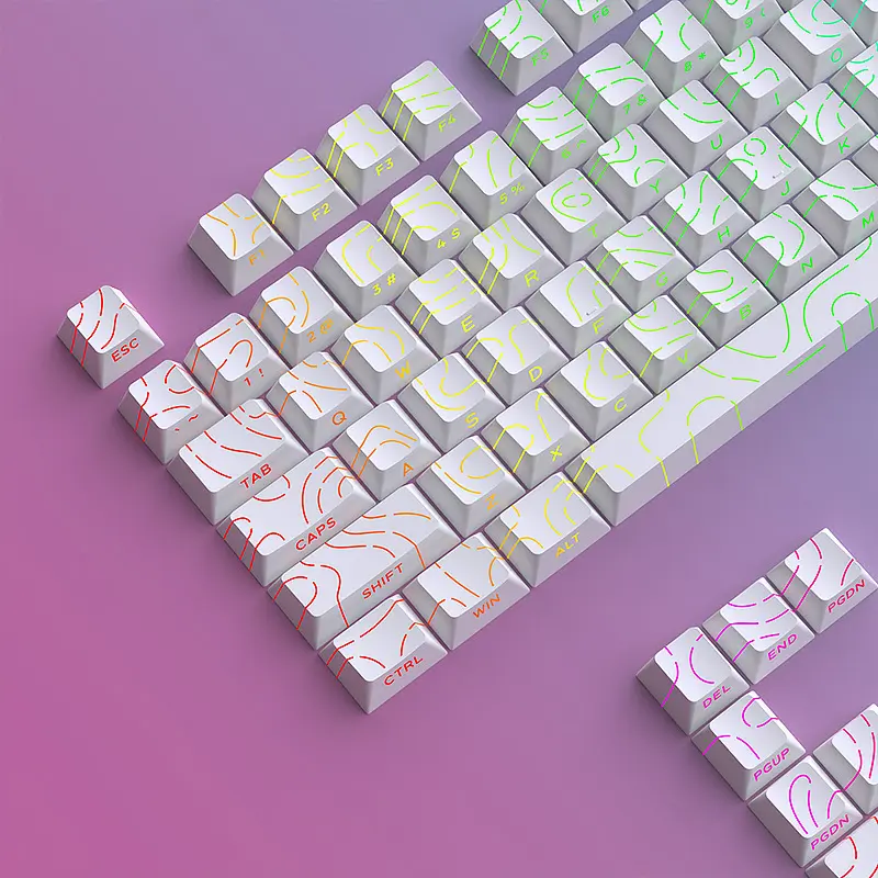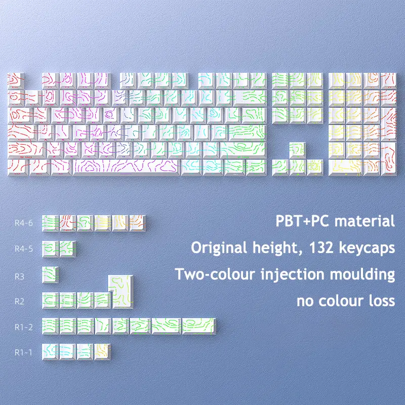 132-Key PBT Keycaps - Topographic Side Print Translucent Cherry Profile for Mechanical & Magnetic Switches
