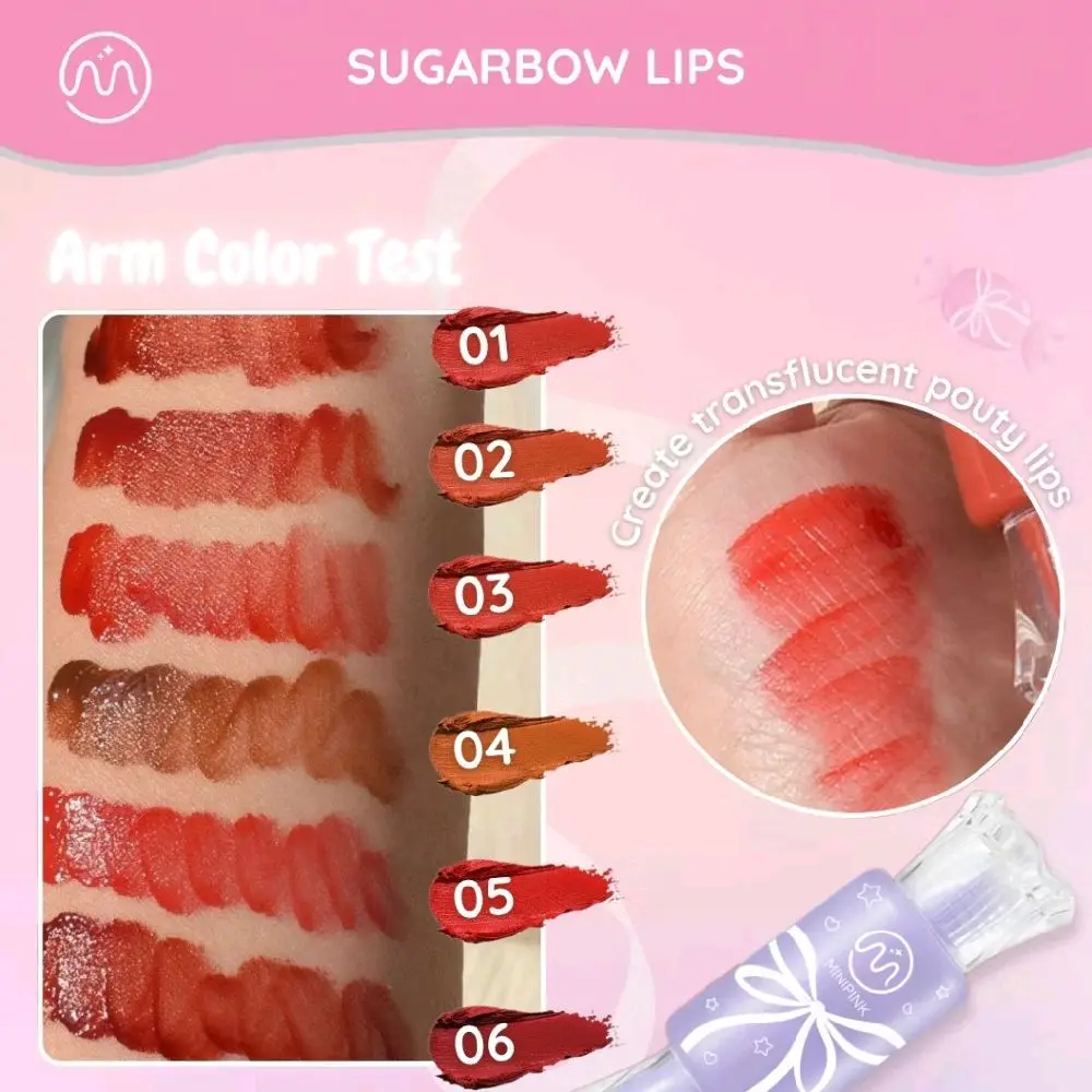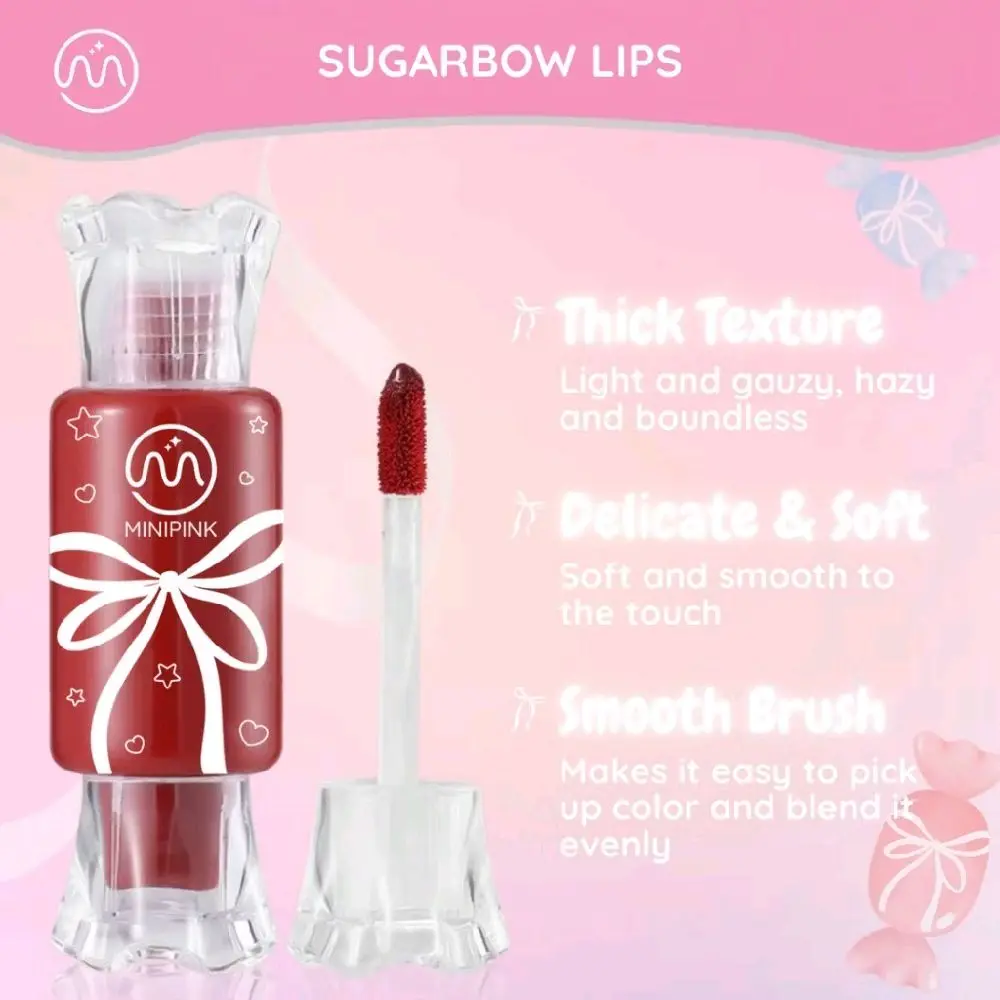 Rasakan sensasi bibir cantik dan sehat dengan MINIPINK Sugarbow Lips. Lip tint dengan kemasan permen yang menggemaskan ini dirancang untuk memberikan warna yang cerah, tahan lama, dan tekstur lembut yang nyaman di bibir Anda.
