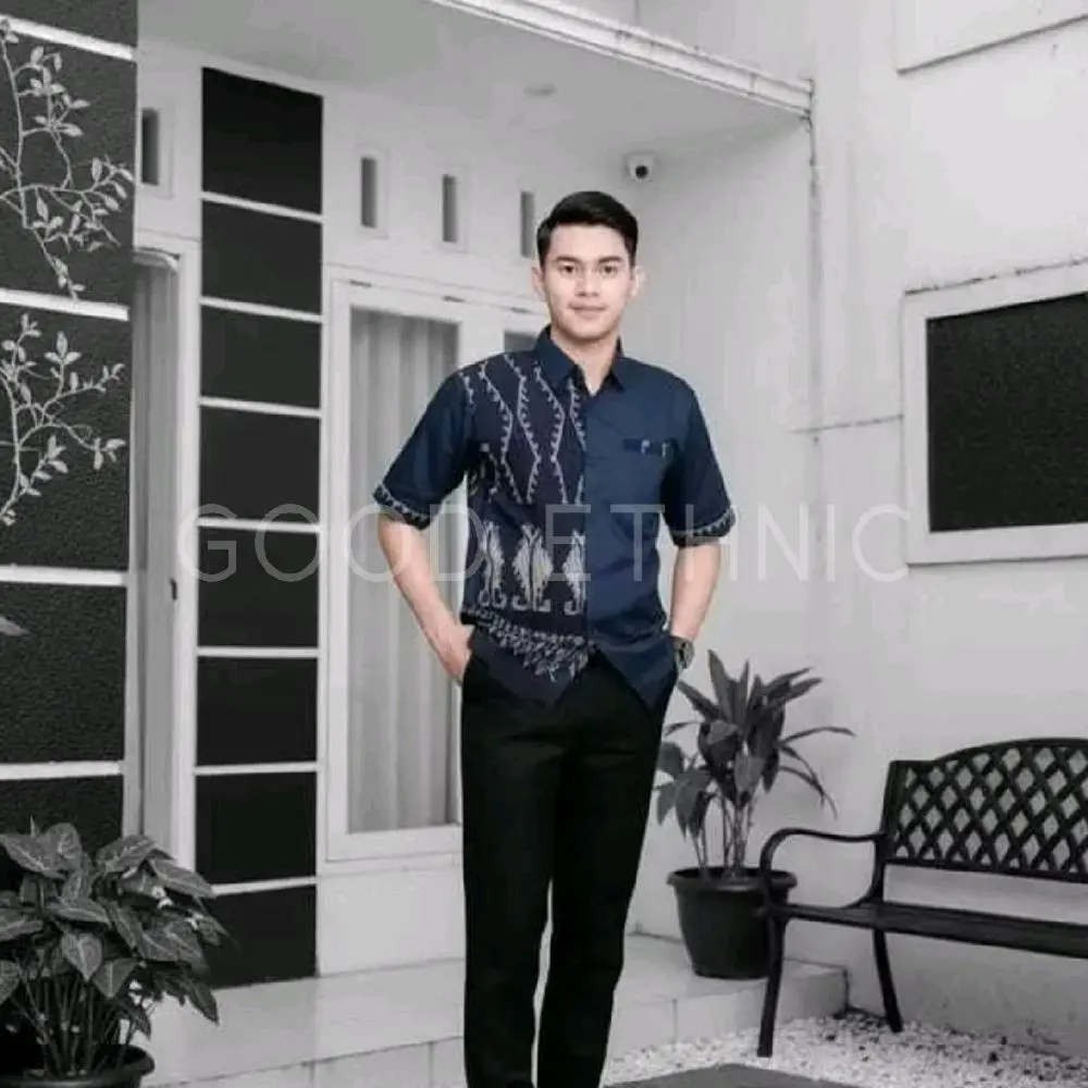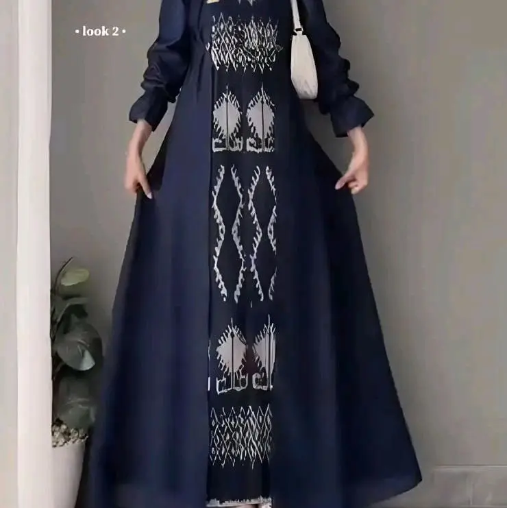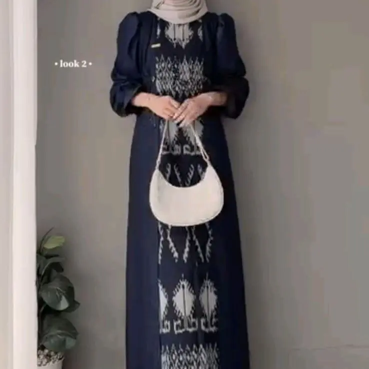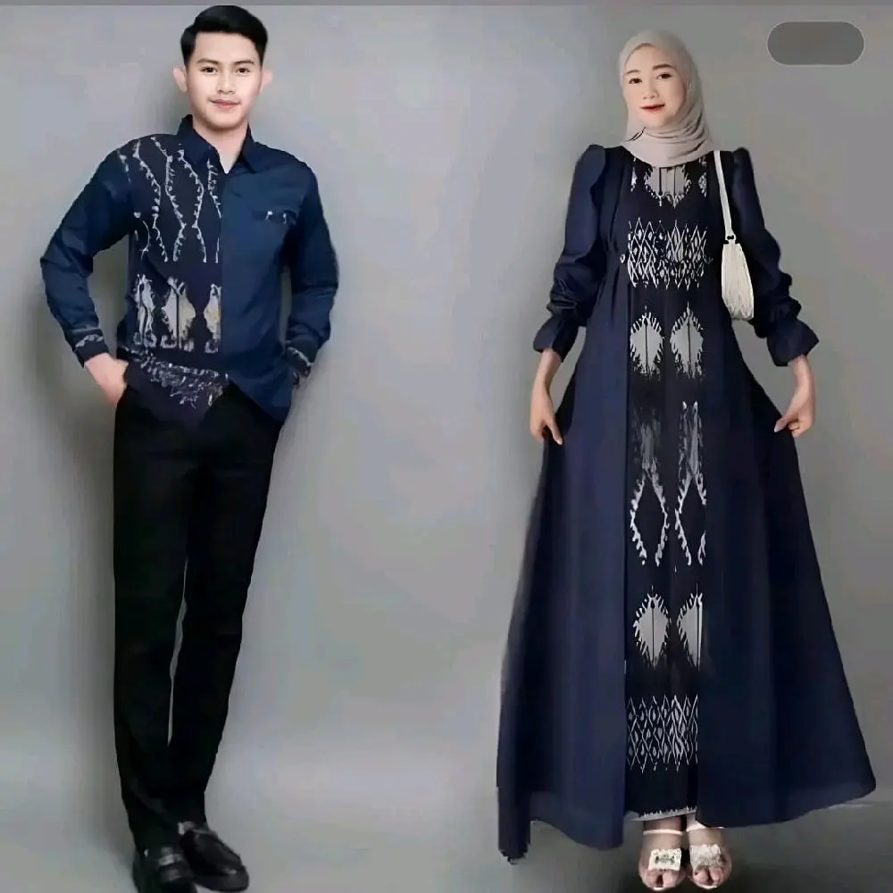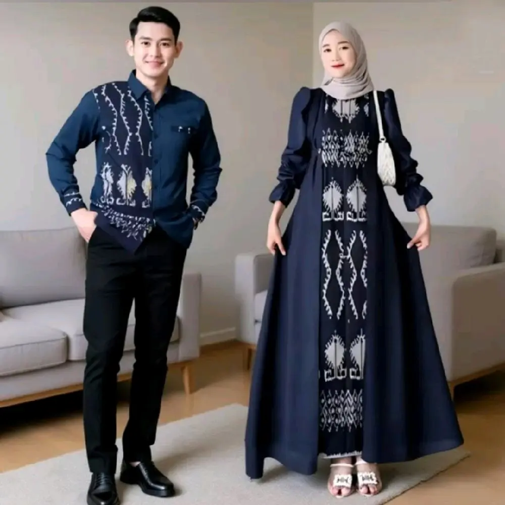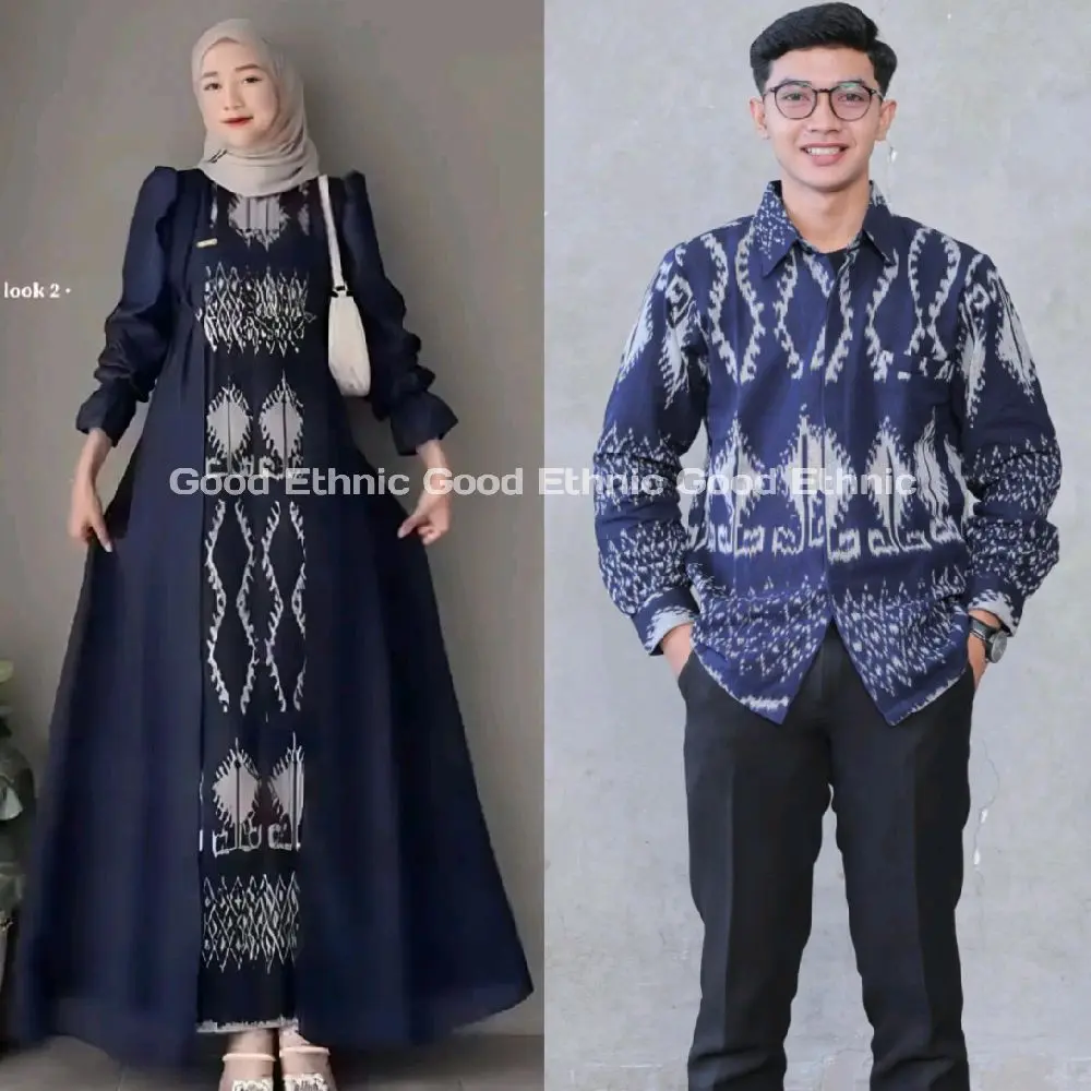 Good Ethnic - Gamis Safitri Dress Safitri Navy Capit Baju Pasangan Tenun Muslim Wanita dan Pria Model Terbaru