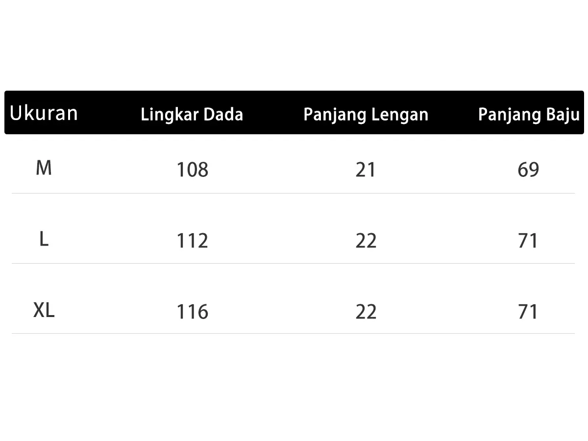 ·L: Panjang 71cm, Dada 112cm, Lengan 22cm