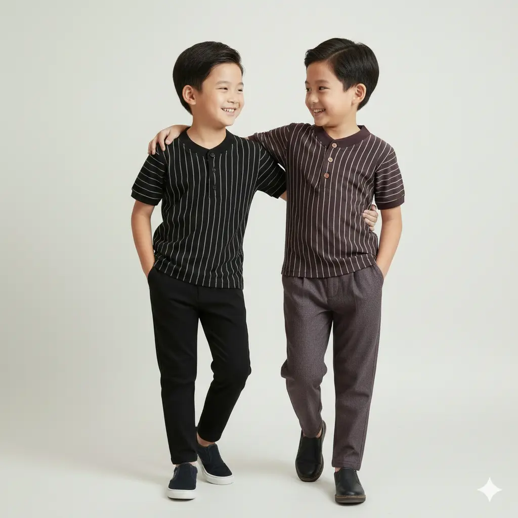 Setelan ALMIR Series dari ESTISHOP X DINODAY dirancang untuk anak yang ingin tampil rapi, dewasa, dan berkelas, tanpa mengorbankan kenyamanan.