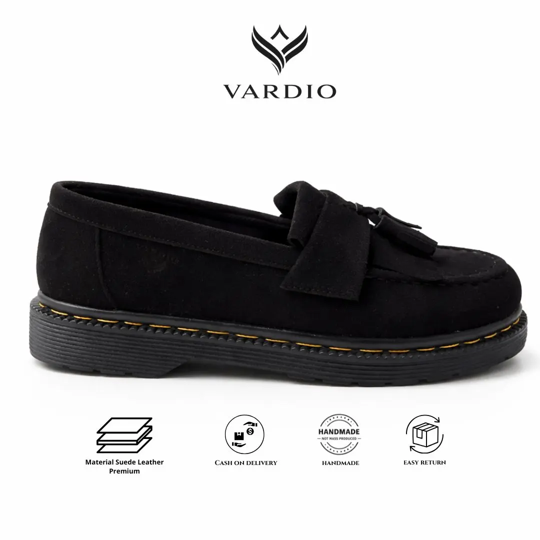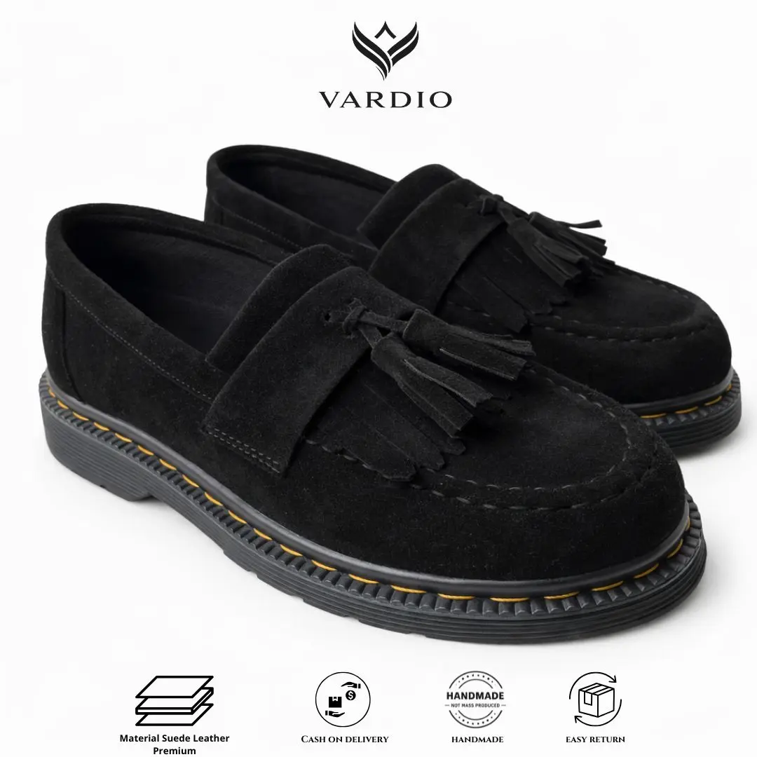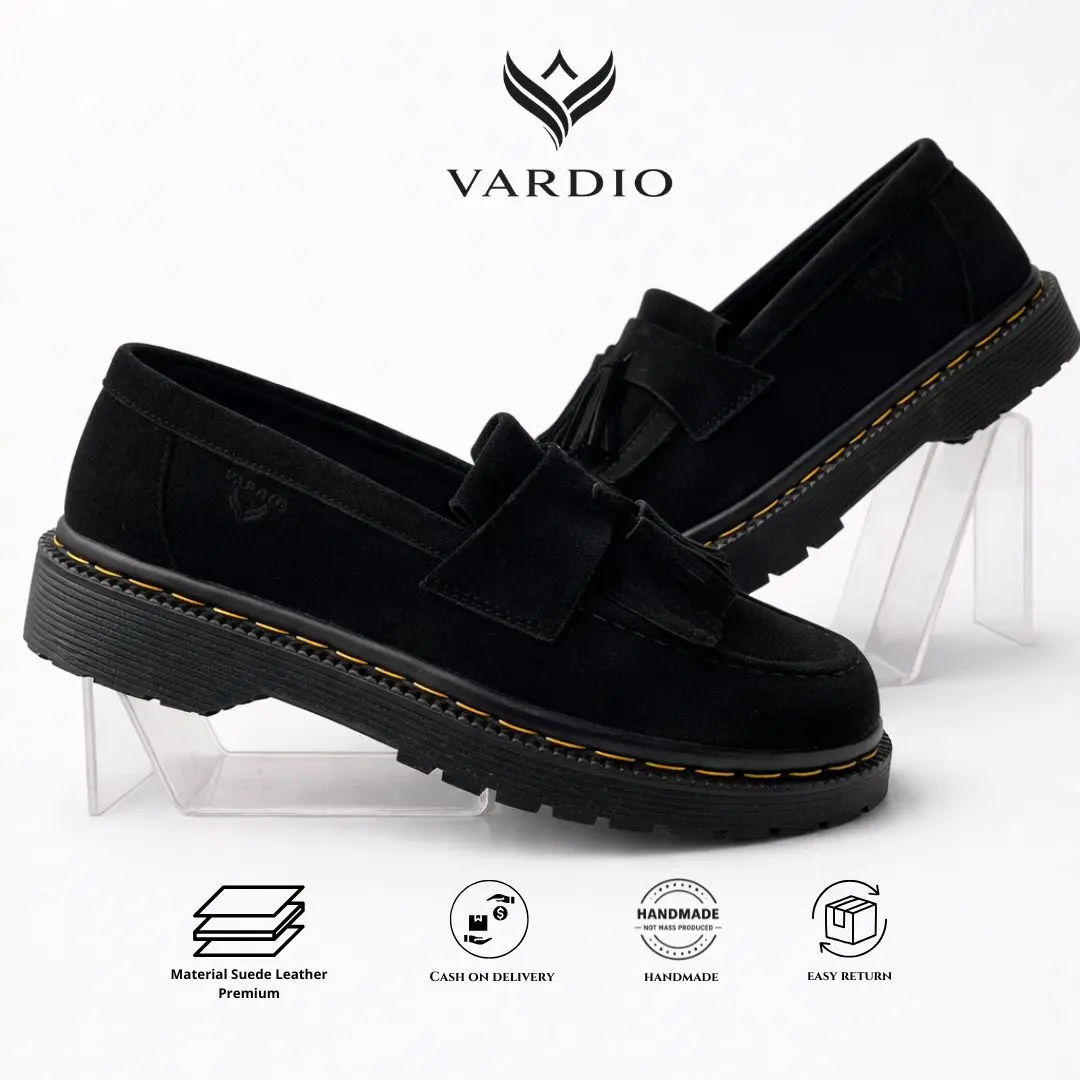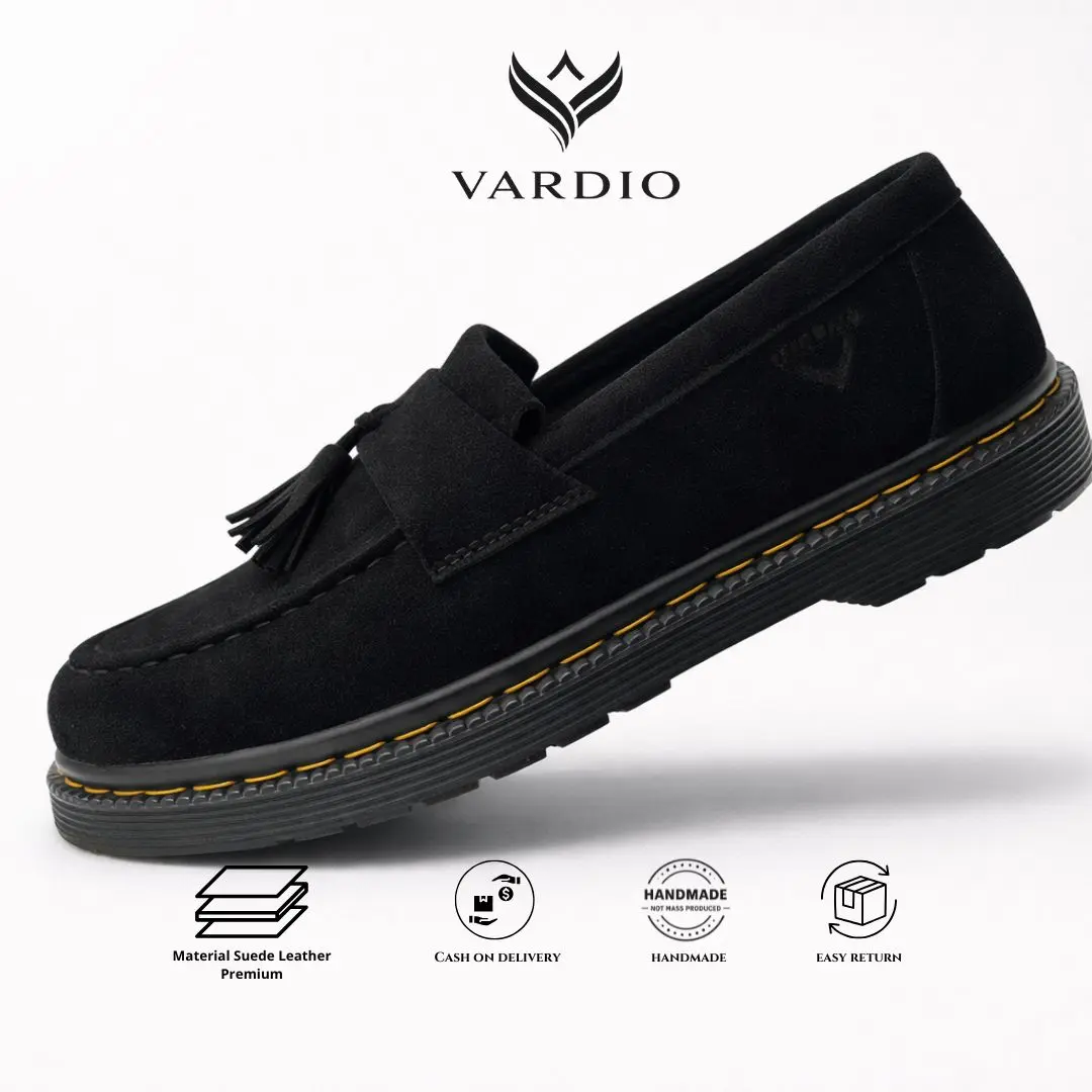 ✨ VARDIO X SAXA01 - Sepatu formal casual loafer Saxa 01, terbuat dari kulit suede hitam. Cocok untuk pria yang mencari sepatu loafers suede pria. Desainnya elegan dan cocok untuk berbagai acara formal dan casual.