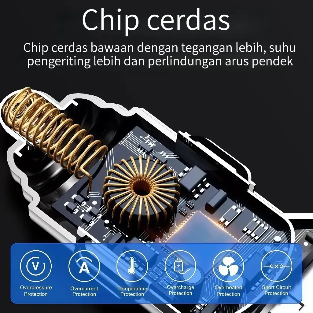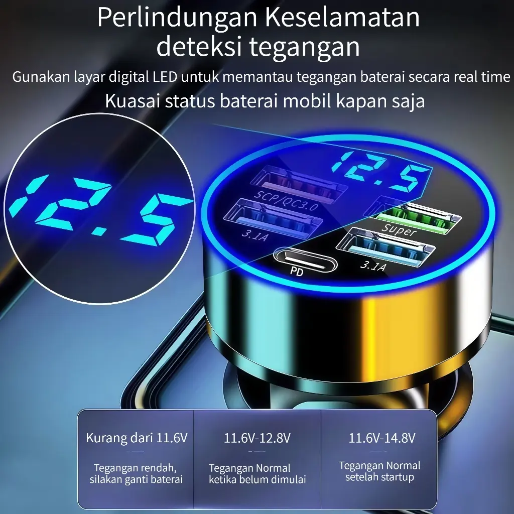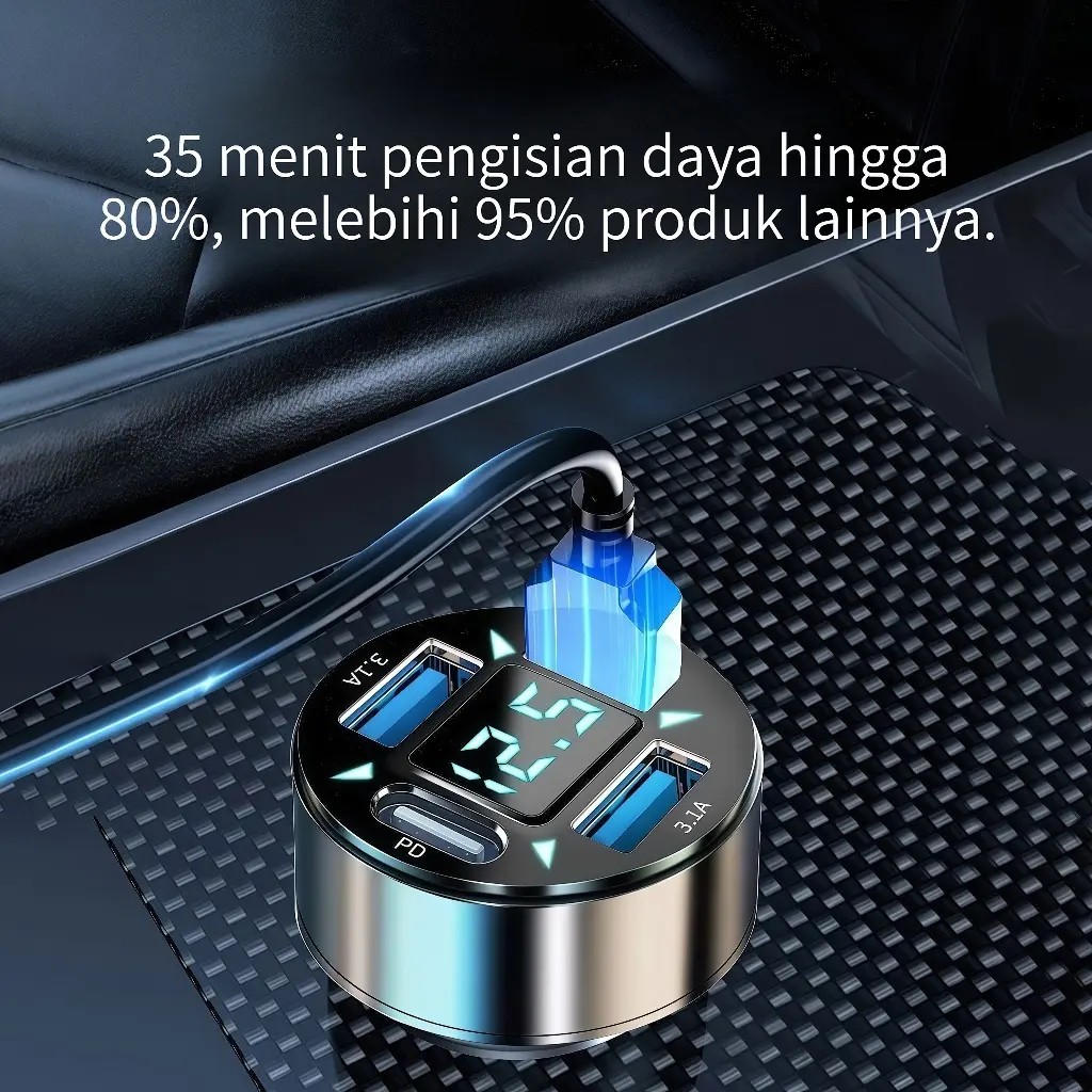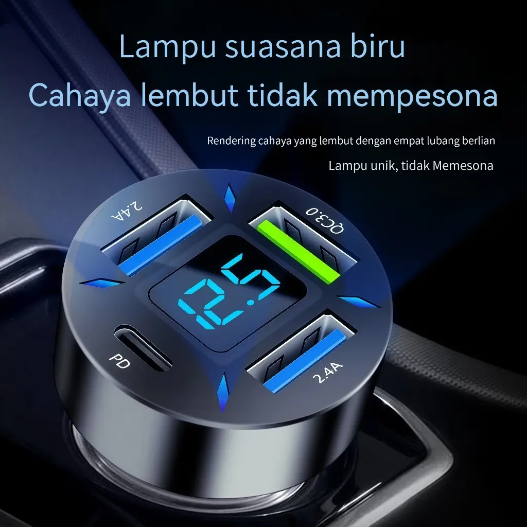 Charger Mobil 66W Super Cepat - 4 Port (3 USB + PD) dengan Display Digital Isi daya semua perangkat Anda di mobil dengan cepat dan aman! Charger universal ini cocok untuk semua jenis mobil (SUV, Jeep, Truk) dan dilengkapi layar digital untuk memantau tegangan baterai mobil. KEUNGGULAN PRODUK: 1. SUPER CEPAT 66W: Isi daya 4 perangkat sekaligus (smartphone, tablet, dll) dengan teknologi PD & QC 3.0. 2. 4 PORT LENGKAP: 1 Port USB-C PD (untuk pengisian tercepat) + 3 Port USB-A untuk semua kebutuhan. 3. DISPLAY DIGITAL: Memantau kesehatan baterai mobil secara real-time (fungsi voltmeter). 4. UNIVERSAL 12V/24V: Langsung pakai untuk semua jenis mobil, SUV, Jeep, maupun truk. 5. AMAN TANPA KHAWATIR: Dilengkapi proteksi lengkap terhadap panas berlebih, hubung singkat, dan lonjakan daya. PESAN SEKARANG DI TIKTOK! Garansi Resmi 1 Tahun Pengiriman Cepat & Gratis Ongkir* Stok Terbatas, Sedang Laris! Jadikan perjalanan Anda lebih praktis dan bebas khawatir baterai habis. Klik BELI sekarang!