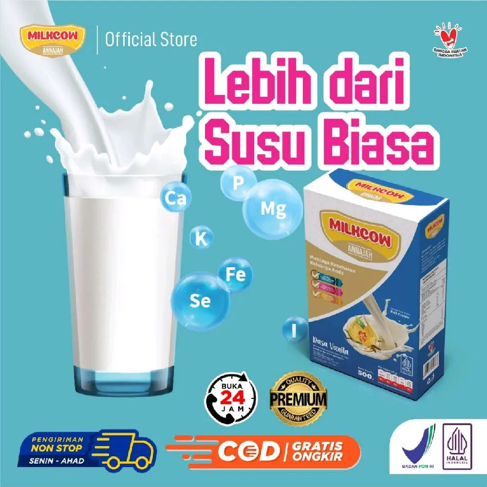 ·Penggemuk Badan: Susu Sapi MILKCOW 500gr adalah pelengkap gizi yang dirancang untuk membantu penggemuk badan. 🐄