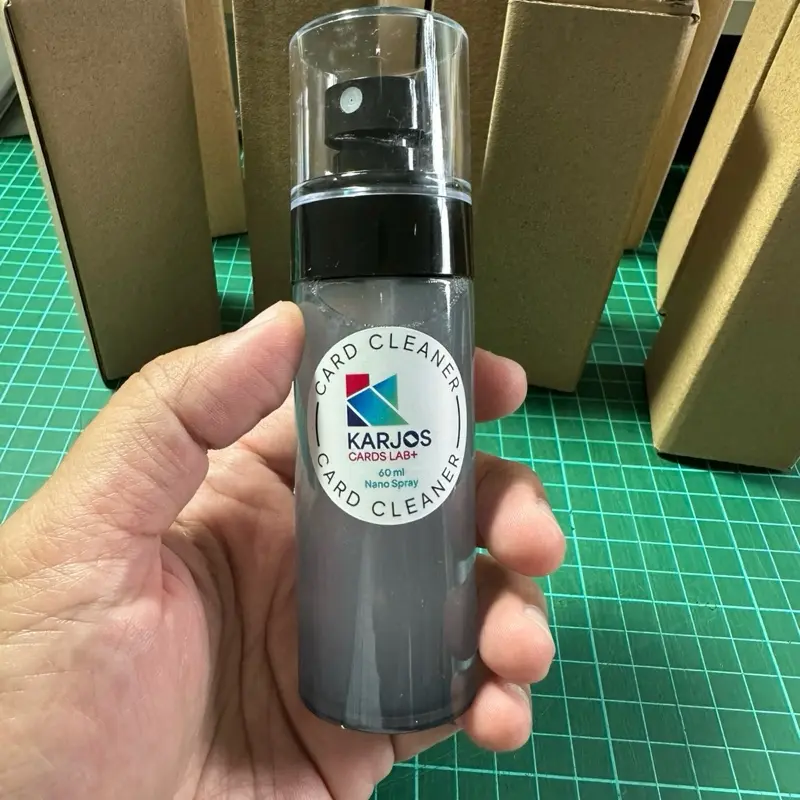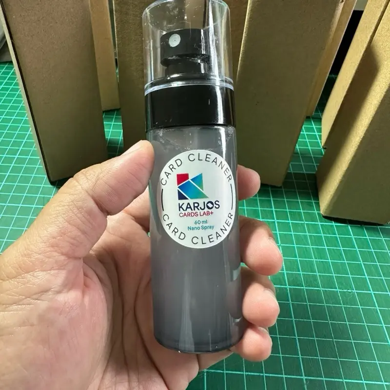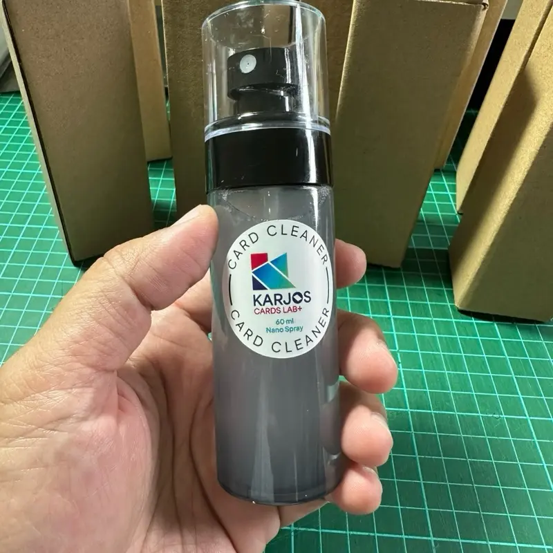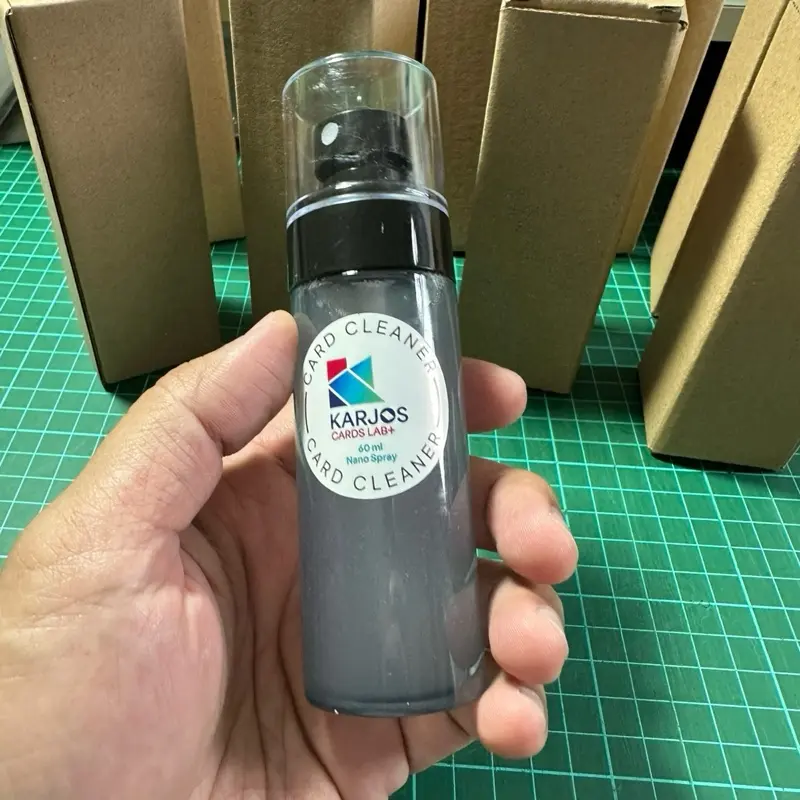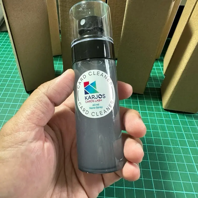 Kini hadir kemasan baru KARJOS Cards Lab+ dengan nano spray yang lebih halus dan isi 60 ml (bonus 20 ml) , dirancang untuk membantu perawatan permukaan kartu TCG agar tetap bersih dan terawat.