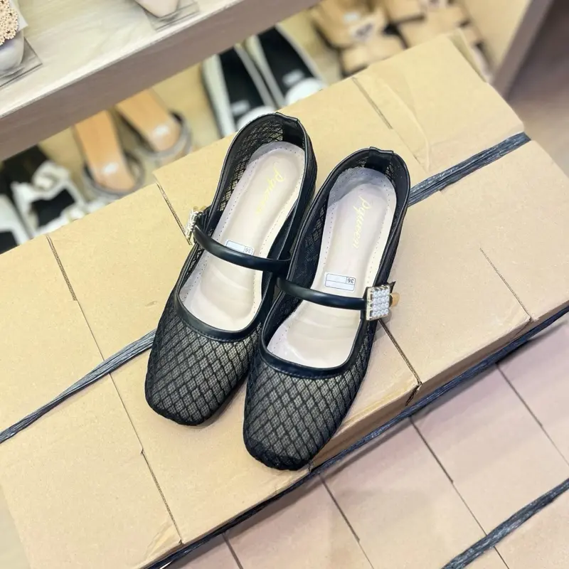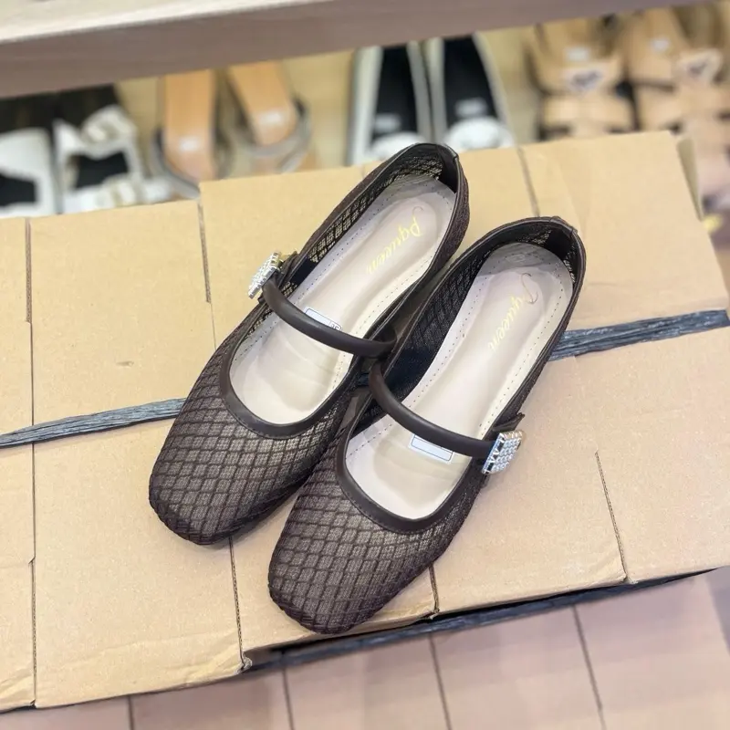 Sepatu Shoes Wanita Model Net Warna Putih Hitam Coklat Desain Elegan dan Nyaman