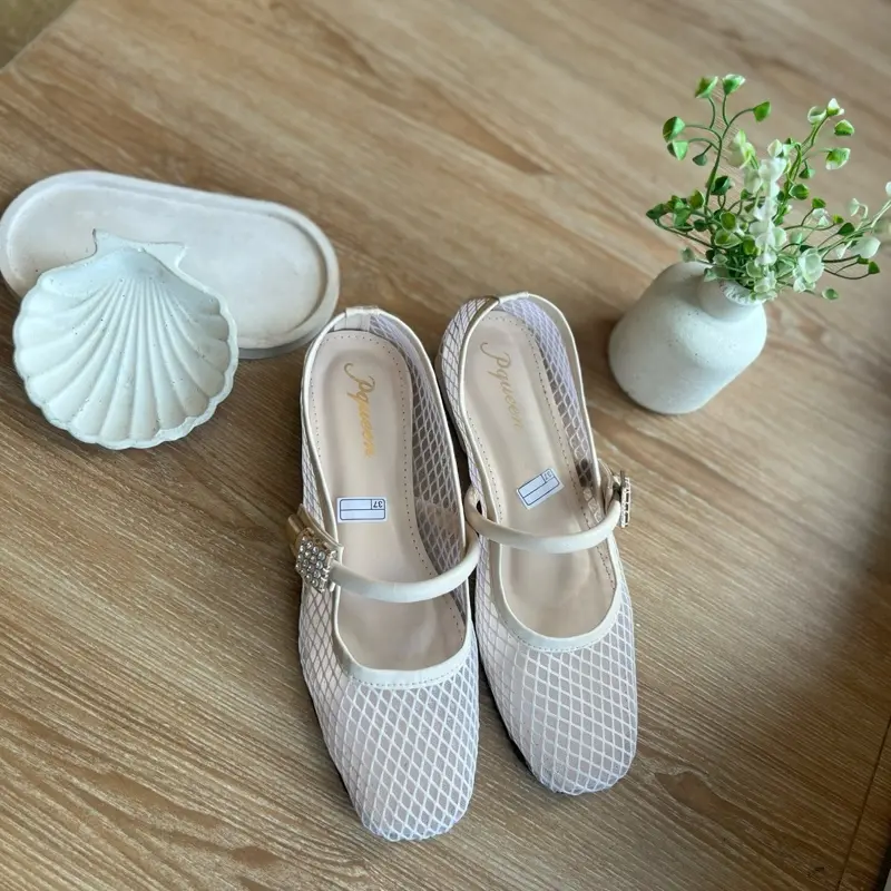 5. Sepatu Shoes Wanita Model Net Warna Putih Hitam Coklat Desain Elegan dan Nyaman