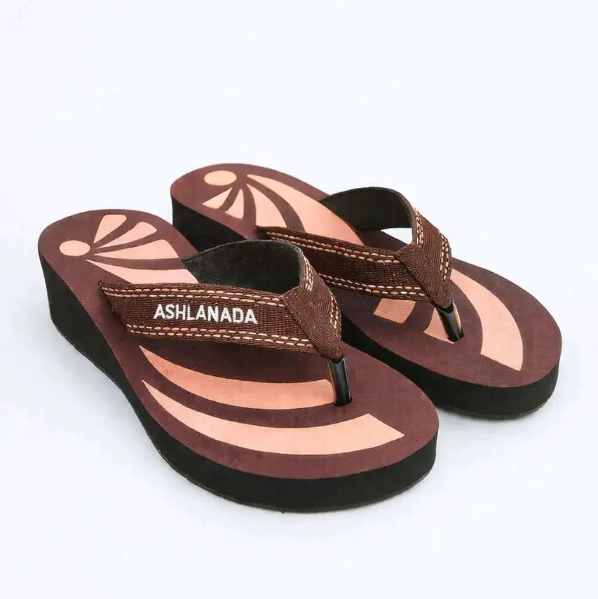 5. ASHLANADA Sandal Jepit Wanita Terbaru Wedges Spon Motif Tinggi 3cm Sol Karet Padat Bahan EVA Nyaman Untuk Sehari-hari Size 36-40