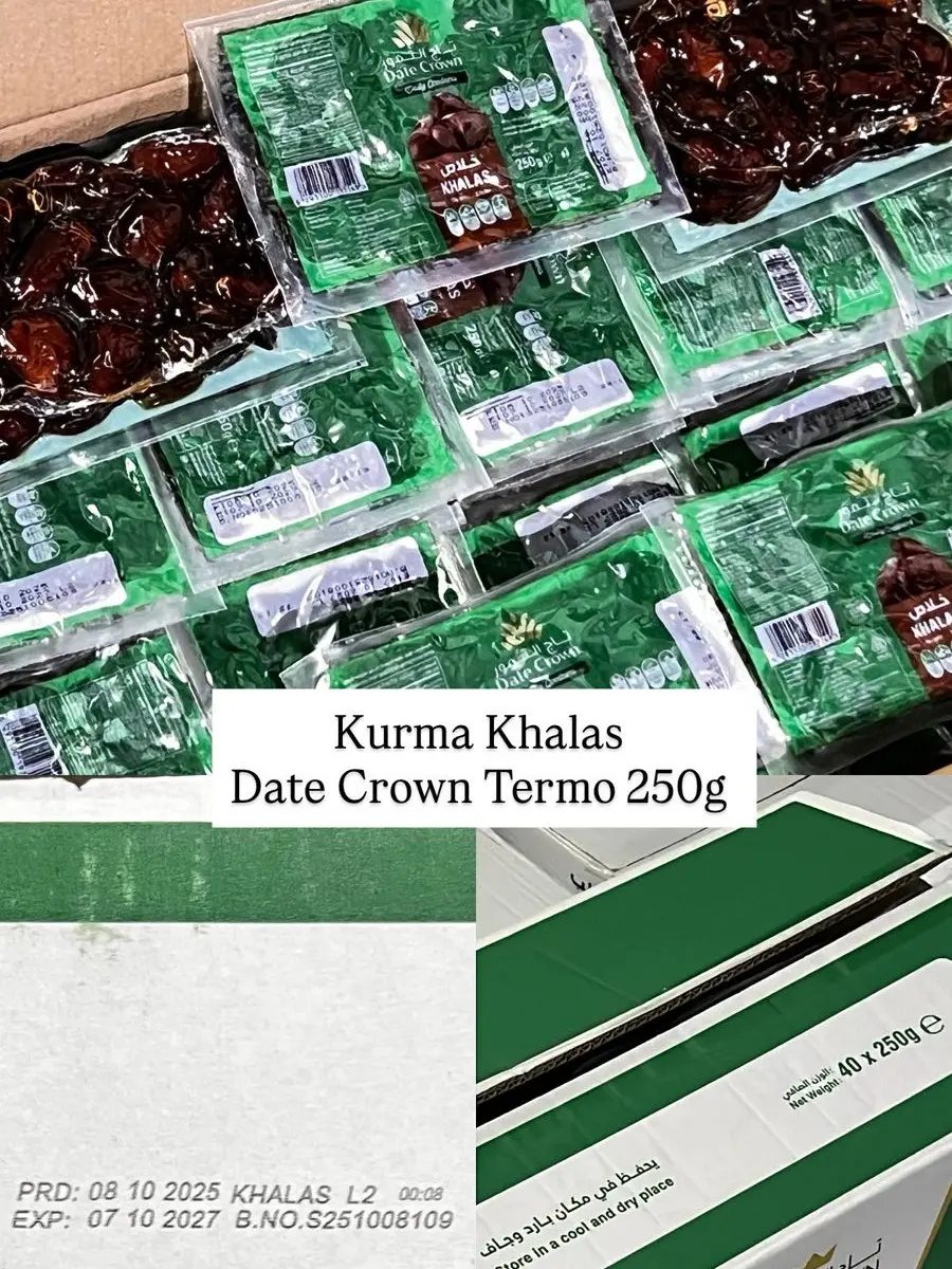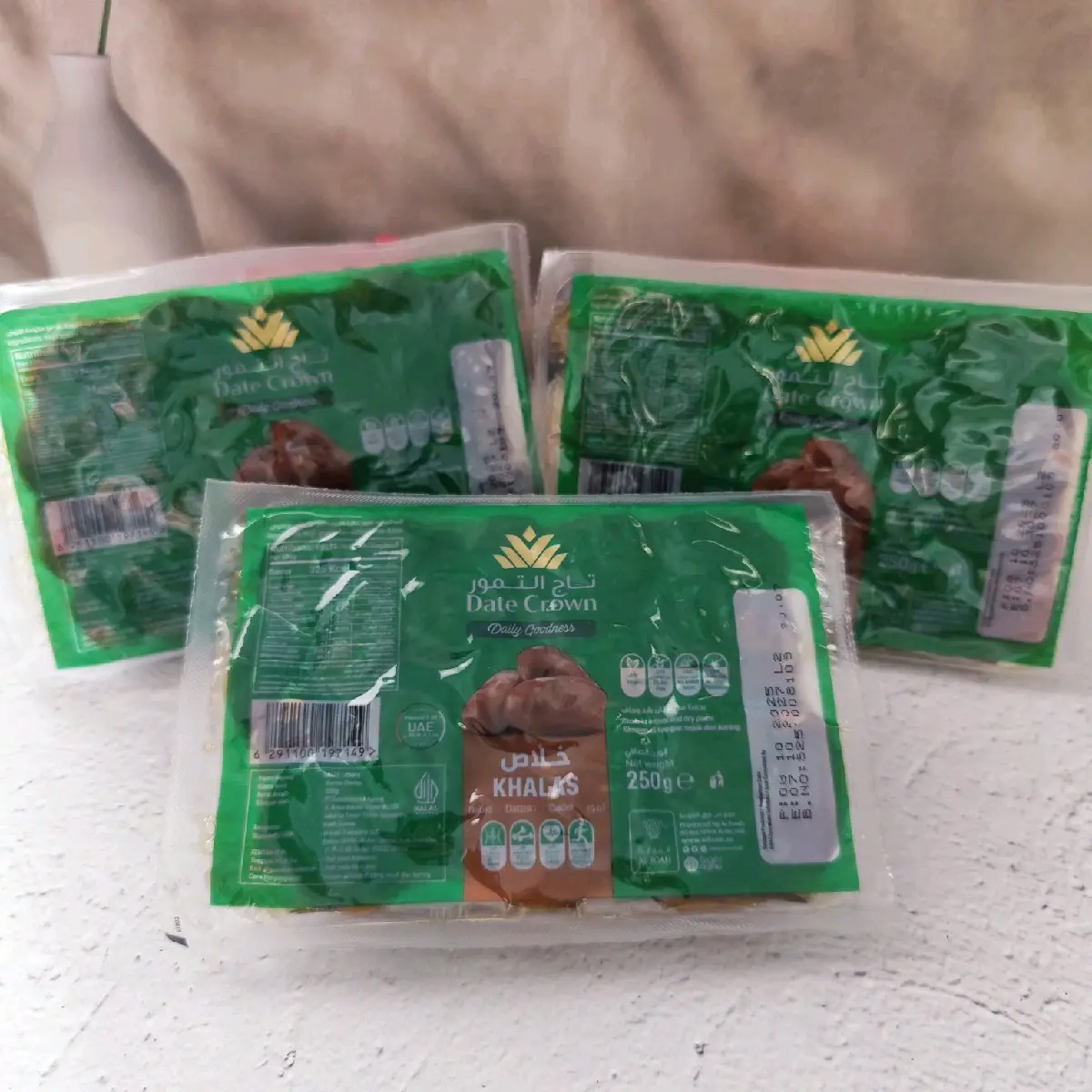 Kurma khalas dikenal kurma yang berkeriput dengan warna coklat tua kemerah-merahan.